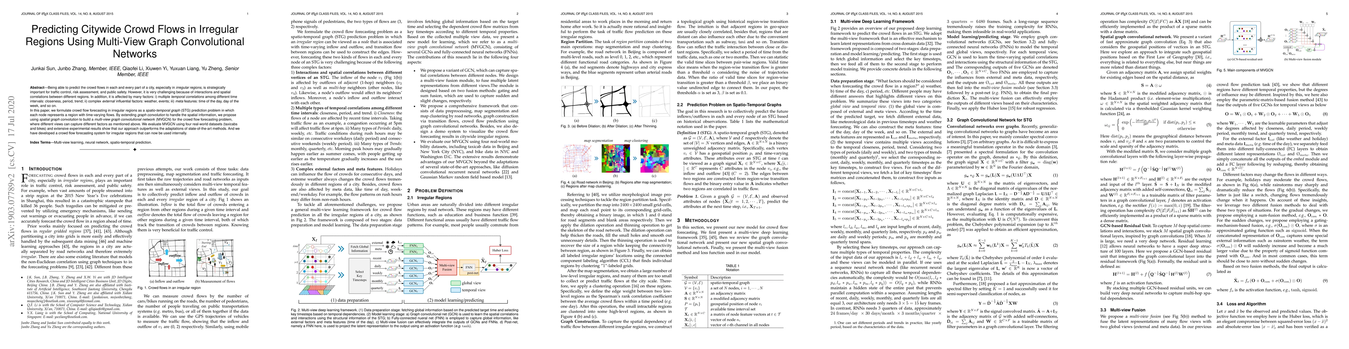 This paper proposes a multi-view graph convolutional network (MVGCN) to predict citywide crowd flows in irregular regions, addressing temporal correlations, external influences, and meta features. Experimental results show that MVGCN outperforms state-of-the-art methods on four real-world datasets.