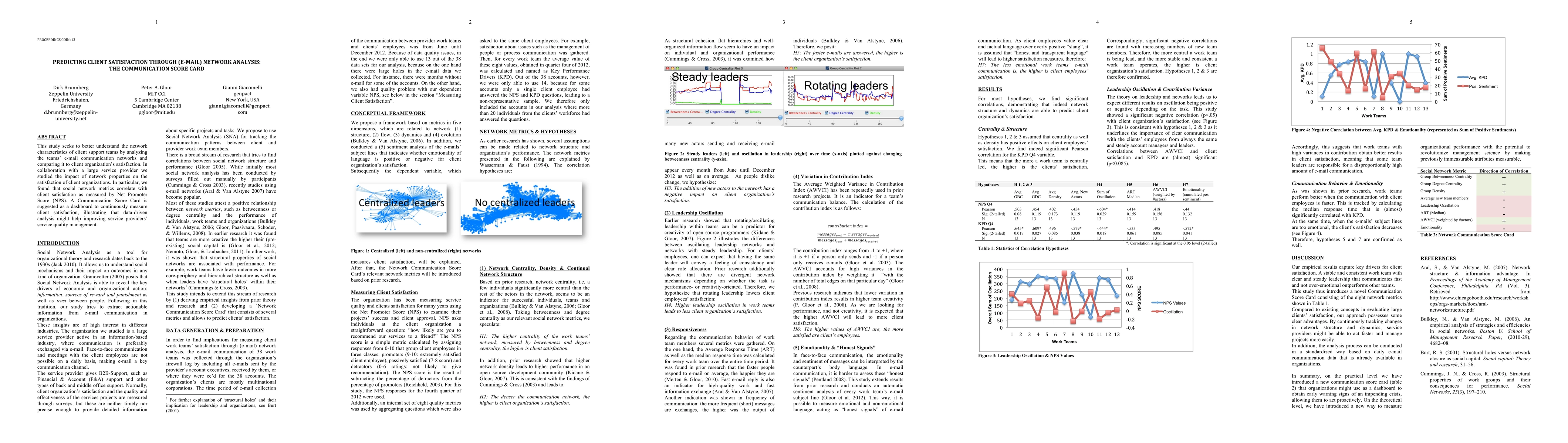 This study analyzes the e-mail communication networks of client support teams to predict client satisfaction, finding that social network metrics correlate with Net Promoter Score (NPS). A proposed Communication Score Card aims to enhance service quality management through continuous data-driven analysis.