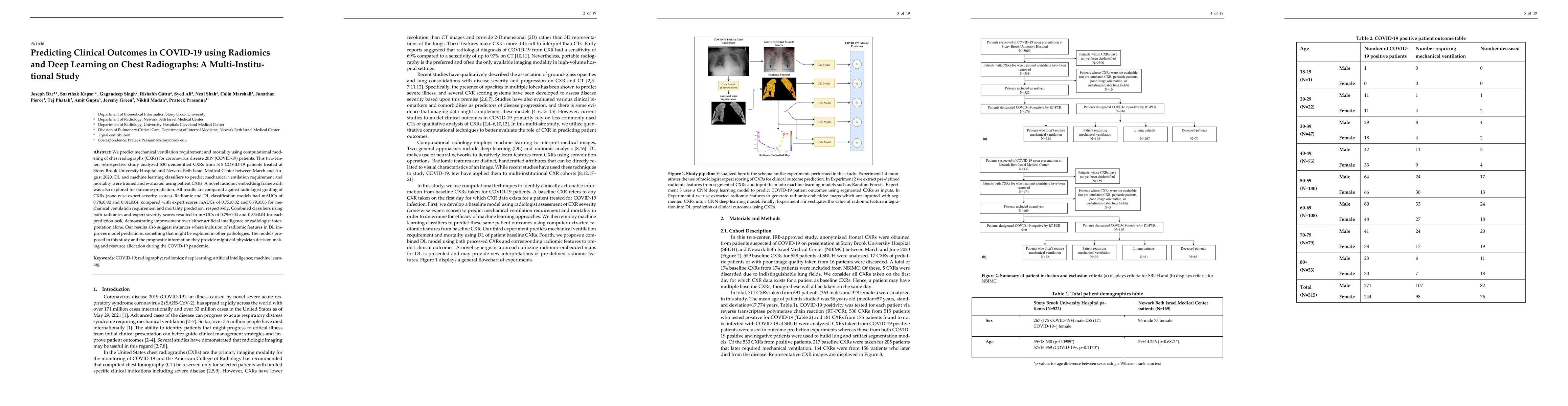 This study uses deep learning and radiomics on chest radiographs to predict mechanical ventilation requirement and mortality in COVID-19 patients, showing improved outcomes compared to radiologist assessments alone. Combined radiomics and expert severity scores further enhanced prediction accuracy, suggesting potential benefits for clinical decision-making.
