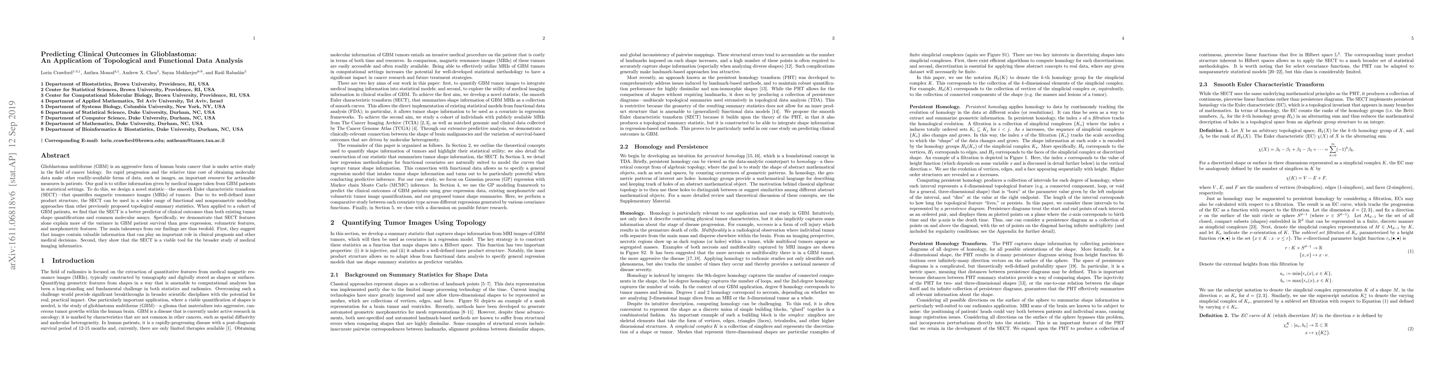 Glioblastoma multiforme (GBM) is an aggressive form of human brain cancer that is under active study in the field of cancer biology. Its rapid progression and the relative time cost of obtaining molecular data make other readily-available forms of data, such as images, an important resource for actionable measures in patients. Our goal is to utilize information given by medical images taken from GBM patients in statistical settings. To do this, we design a novel statistic---the smooth Euler characteristic transform (SECT)---that quantifies magnetic resonance images (MRIs) of tumors. Due to its well-defined inner product structure, the SECT can be used in a wider range of functional and nonparametric modeling approaches than other previously proposed topological summary statistics. When applied to a cohort of GBM patients, we find that the SECT is a better predictor of clinical outcomes than both existing tumor shape quantifications and common molecular assays. Specifically, we demonstrate that SECT features alone explain more of the variance in GBM patient survival than gene expression, volumetric features, and morphometric features. The main takeaways from our findings are thus twofold. First, they suggest that images contain valuable information that can play an important role in clinical prognosis and other medical decisions. Second, they show that the SECT is a viable tool for the broader study of medical imaging informatics.