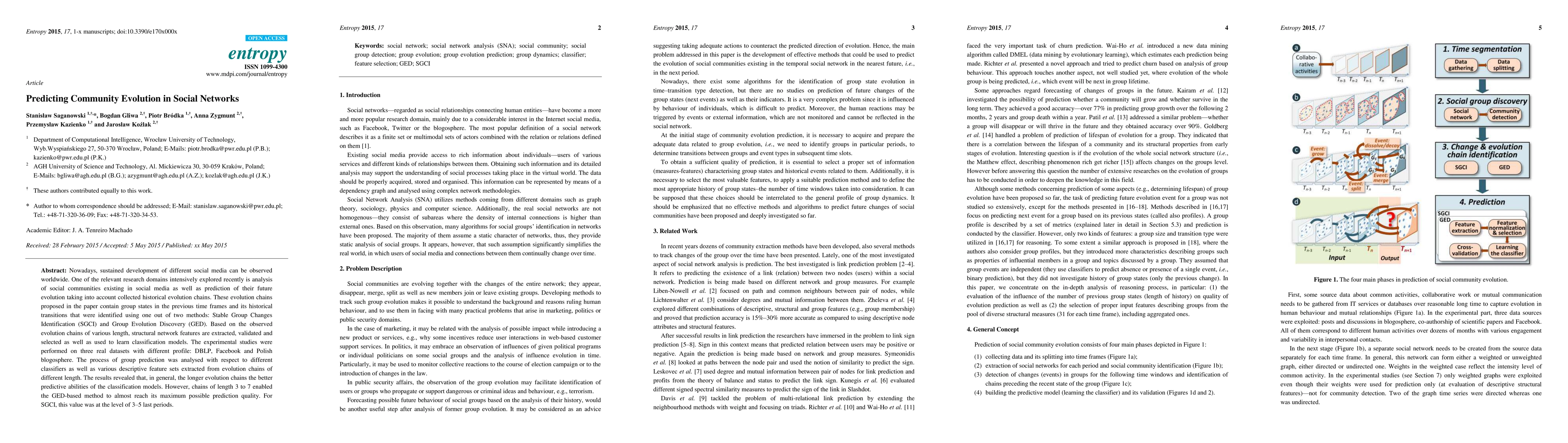 This paper explores methods for predicting the evolution of social communities in social media using historical evolution chains. It employs two methods, SGCI and GED, to identify group transitions and uses extracted features to train classification models, achieving better predictions with longer evolution chains, though GED shows near-maximum quality with chains of length 3 to 7.