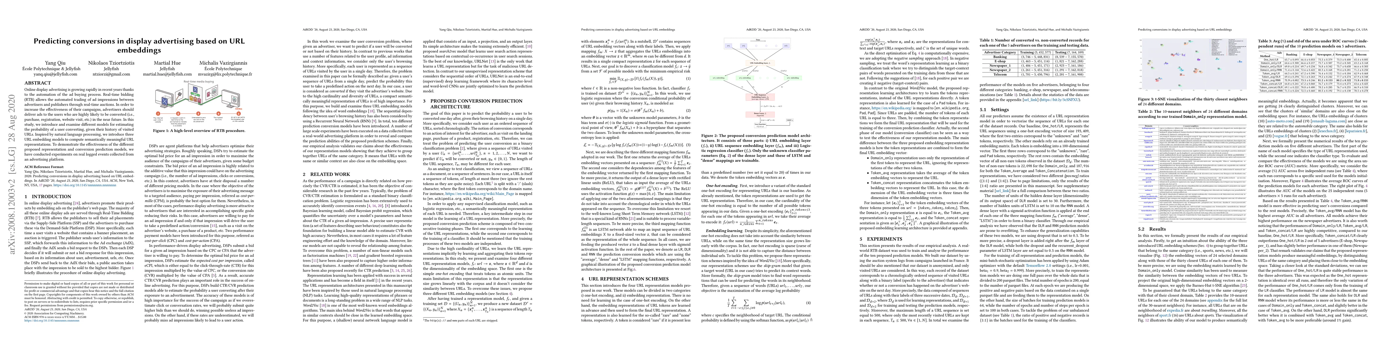 Researchers developed URL embedding models to predict user conversions in display advertising based on visited URLs, showing promise for more targeted ad delivery.