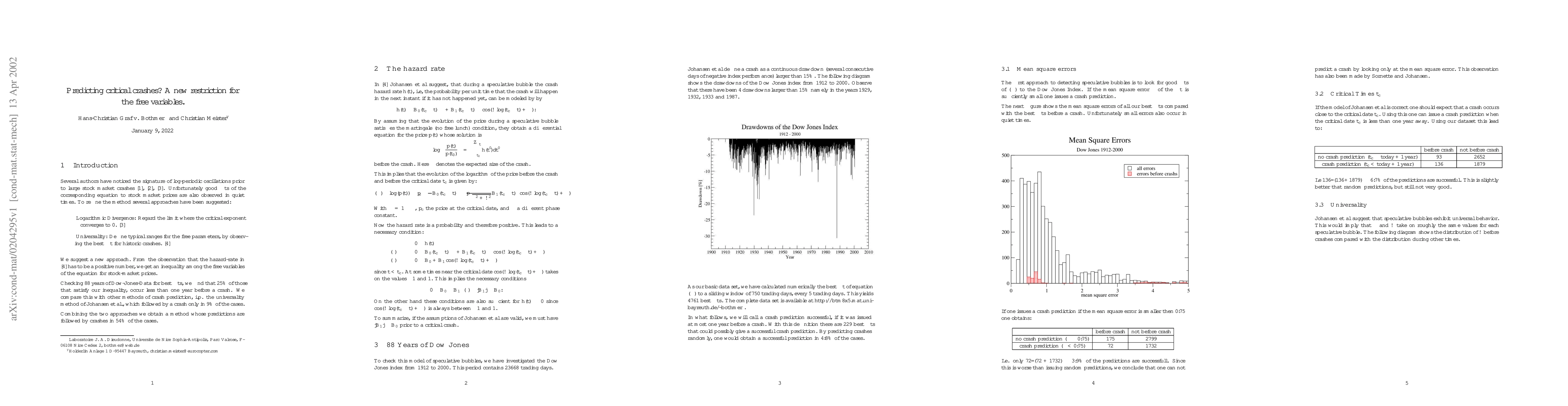 Researchers propose a new method to predict stock market crashes, finding that 25% of best-fit models that satisfy a certain inequality occur before a crash, outperforming other methods.