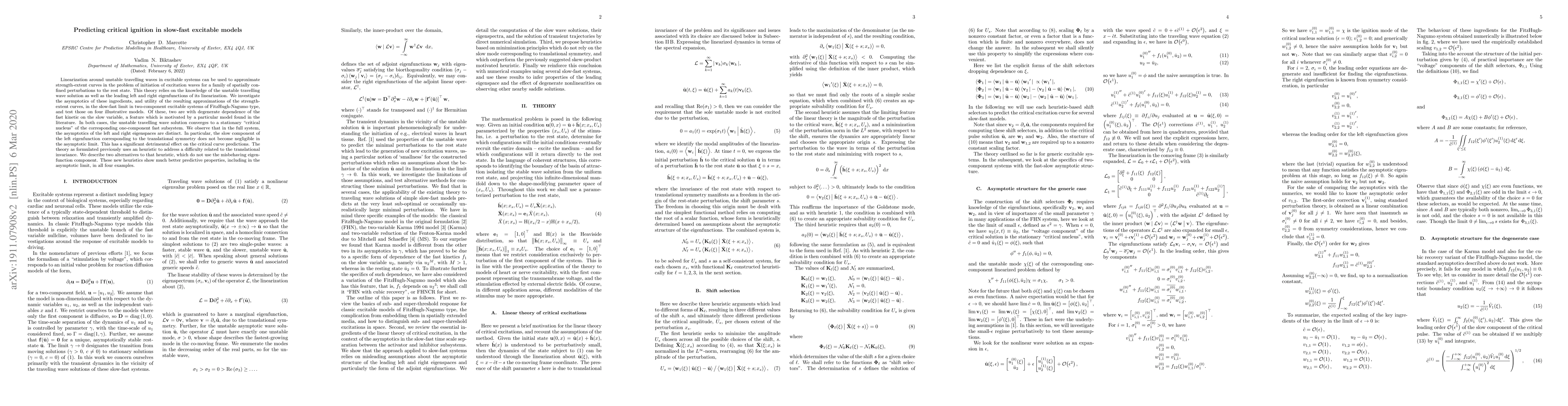 This paper develops a theoretical framework to predict critical ignition in slow-fast excitable models by approximating strength-extent curves for excitation wave initiation. It finds that the traditional heuristic approach has limitations, particularly in the asymptotic limit, and proposes two improved heuristics that better predict critical ignition in four tested models, especially those with degenerate fast kinetics.