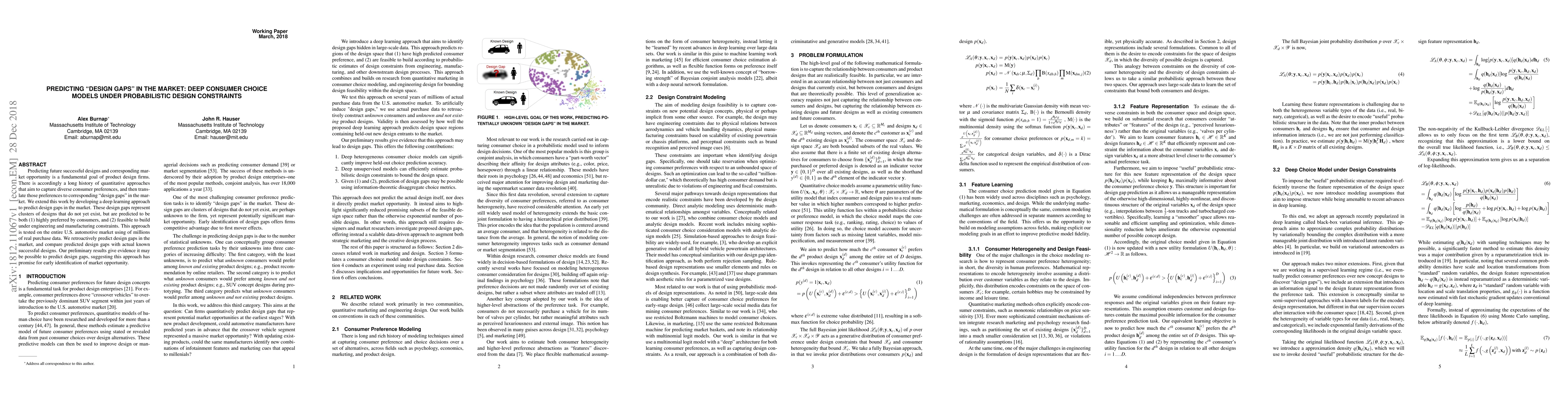 Predicting future successful designs and corresponding market opportunity is a fundamental goal of product design firms. There is accordingly a long history of quantitative approaches that aim to capture diverse consumer preferences, and then translate those preferences to corresponding "design gaps" in the market. We extend this work by developing a deep learning approach to predict design gaps in the market. These design gaps represent clusters of designs that do not yet exist, but are predicted to be both (1) highly preferred by consumers, and (2) feasible to build under engineering and manufacturing constraints. This approach is tested on the entire U.S. automotive market using of millions of real purchase data. We retroactively predict design gaps in the market, and compare predicted design gaps with actual known successful designs. Our preliminary results give evidence it may be possible to predict design gaps, suggesting this approach has promise for early identification of market opportunity.