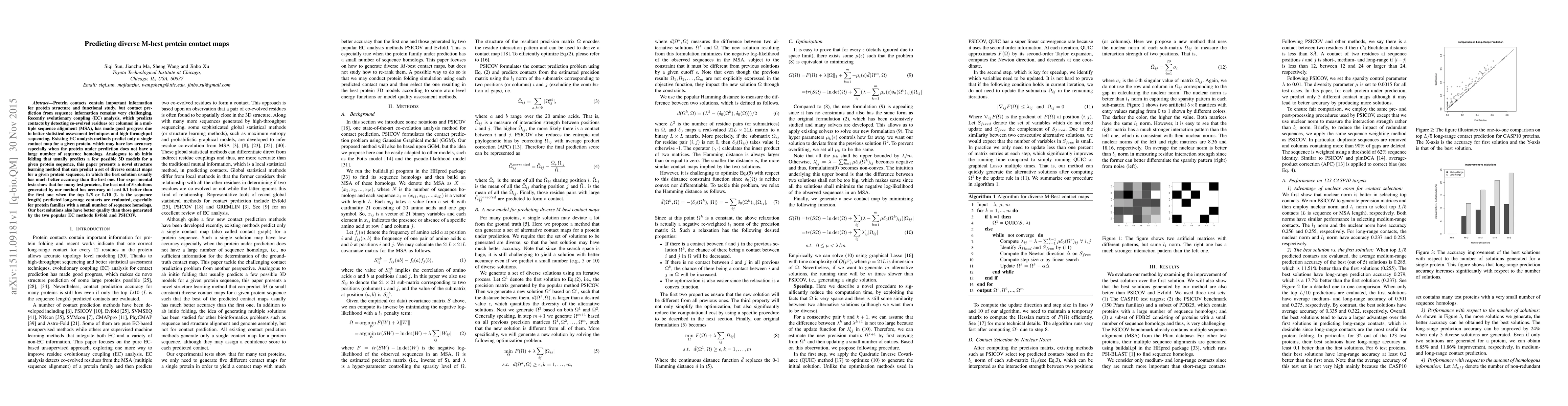 This paper introduces a novel method for predicting diverse M-best protein contact maps using evolutionary coupling analysis, which generates multiple contact maps for improved accuracy, especially for proteins with few homologs. Experimental results show that the best predicted contact map from the set often has significantly higher accuracy than the single map predicted by existing methods.