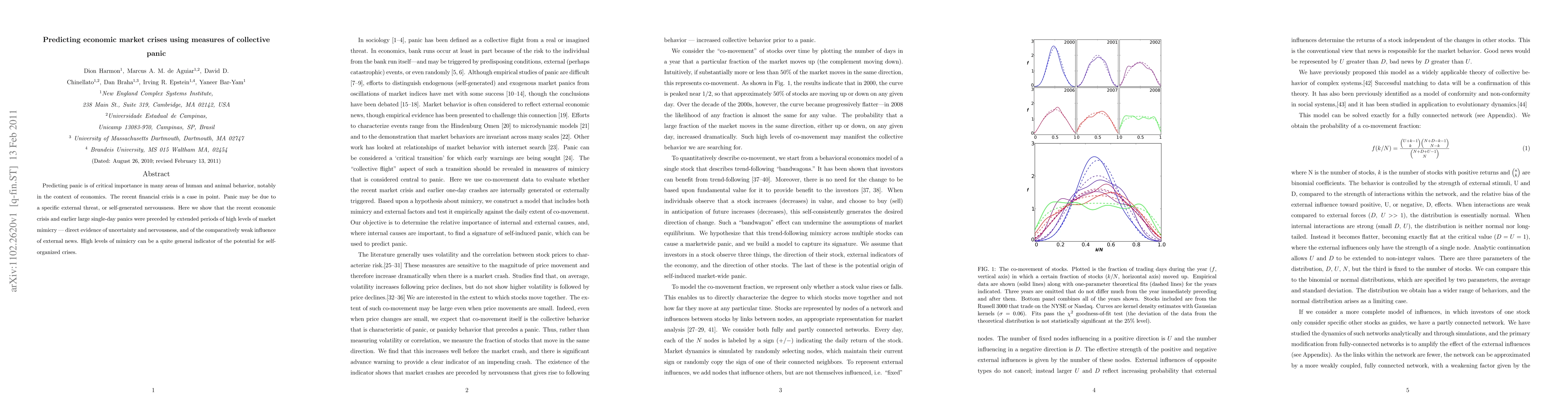 Researchers found that economic market crises were preceded by periods of high market mimicry, indicating uncertainty and self-generated nervousness, and suggest this as a potential indicator of crisis.