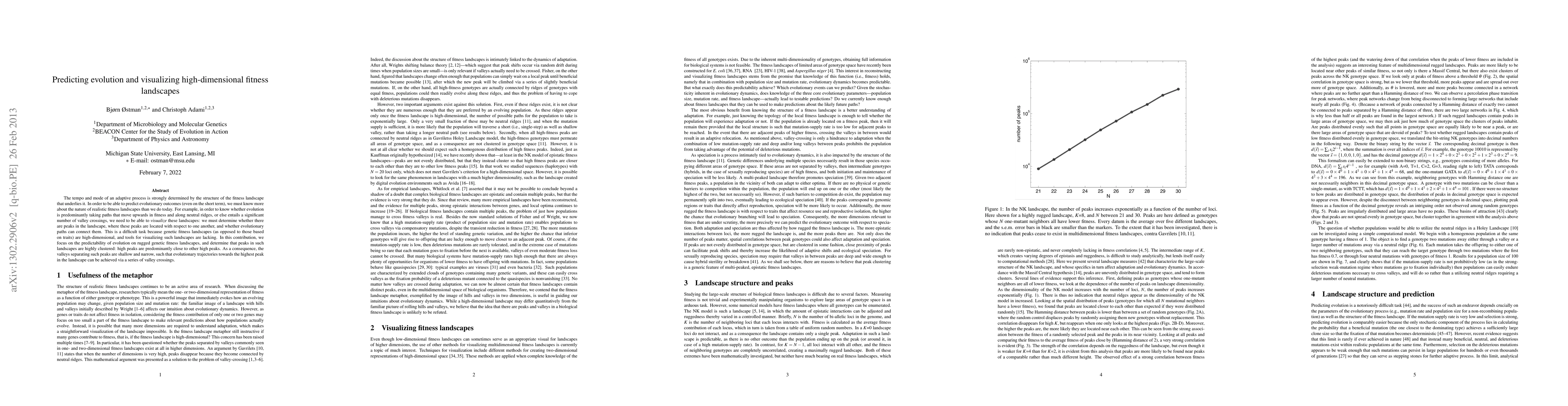 This paper explores the predictability of evolution on high-dimensional genetic fitness landscapes, revealing that high peaks are clustered, leading to shallow valleys that allow evolutionary paths to reach the highest fitness peaks through a series of valley crossings. The study emphasizes the need for better visualization tools to understand these complex landscapes.
