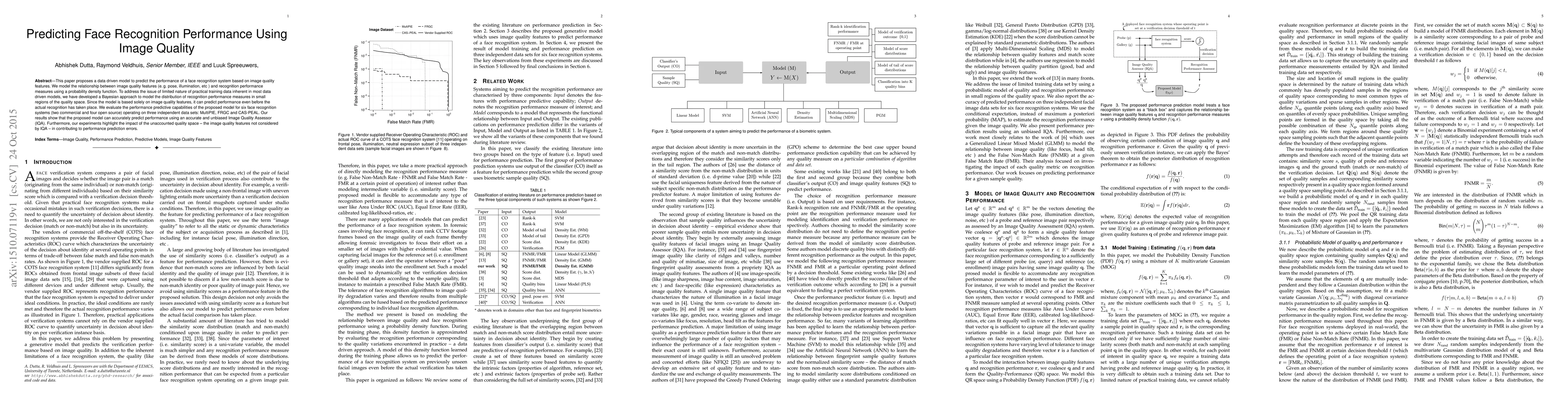 This paper introduces a data-driven model to predict face recognition performance based on image quality features, employing a Bayesian approach to handle limited training data. The model's effectiveness is demonstrated across six face recognition systems on three datasets, highlighting the impact of unaccounted image quality features on prediction accuracy.