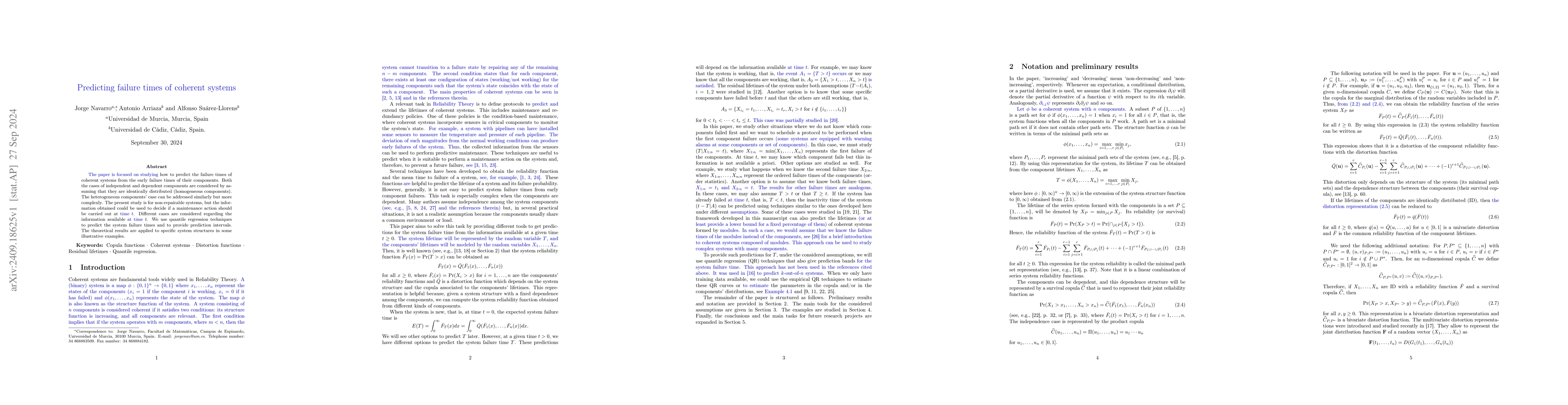 This paper develops methods using quantile regression to predict failure times of coherent systems based on early component failures, considering both independent and dependent component scenarios. The study focuses on non-repairable systems but offers insights for maintenance decisions, and applies these techniques to various system structures with illustrative examples.
