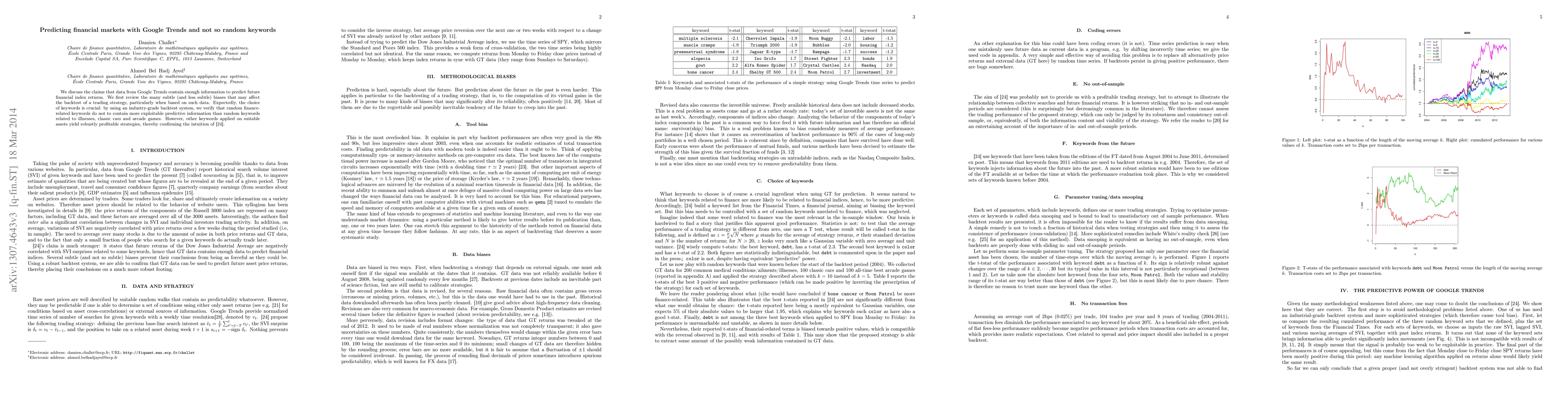 We check the claims that data from Google Trends contain enough data to predict future financial index returns. We first discuss the many subtle (and less subtle) biases that may affect the backtest of a trading strategy, particularly when based on such data. Expectedly, the choice of keywords is crucial: by using an industry-grade backtesting system, we verify that random finance-related keywords do not to contain more exploitable predictive information than random keywords related to illnesses, classic cars and arcade games. We however show that other keywords applied on suitable assets yield robustly profitable strategies, thereby confirming the intuition of Preis et al. (2013)