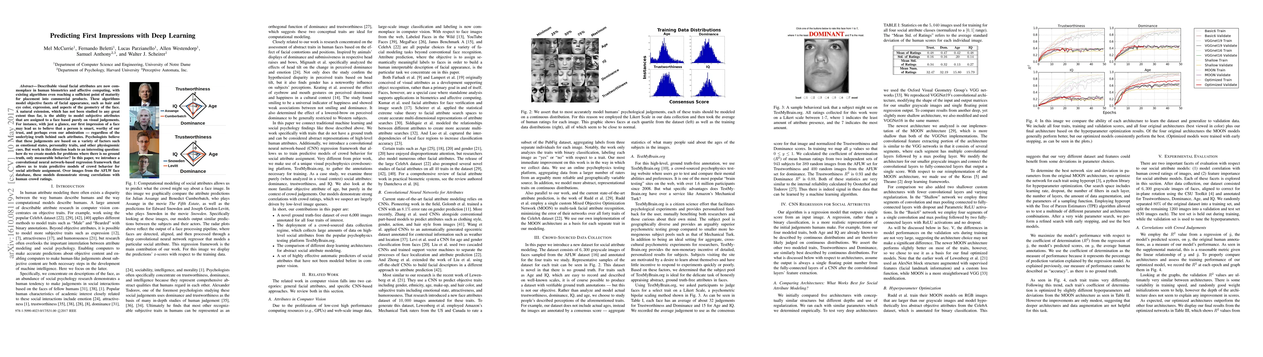 Describable visual facial attributes are now commonplace in human biometrics and affective computing, with existing algorithms even reaching a sufficient point of maturity for placement into commercial products. These algorithms model objective facets of facial appearance, such as hair and eye color, expression, and aspects of the geometry of the face. A natural extension, which has not been studied to any great extent thus far, is the ability to model subjective attributes that are assigned to a face based purely on visual judgements. For instance, with just a glance, our first impression of a face may lead us to believe that a person is smart, worthy of our trust, and perhaps even our admiration - regardless of the underlying truth behind such attributes. Psychologists believe that these judgements are based on a variety of factors such as emotional states, personality traits, and other physiognomic cues. But work in this direction leads to an interesting question: how do we create models for problems where there is no ground truth, only measurable behavior? In this paper, we introduce a new convolutional neural network-based regression framework that allows us to train predictive models of crowd behavior for social attribute assignment. Over images from the AFLW face database, these models demonstrate strong correlations with human crowd ratings.