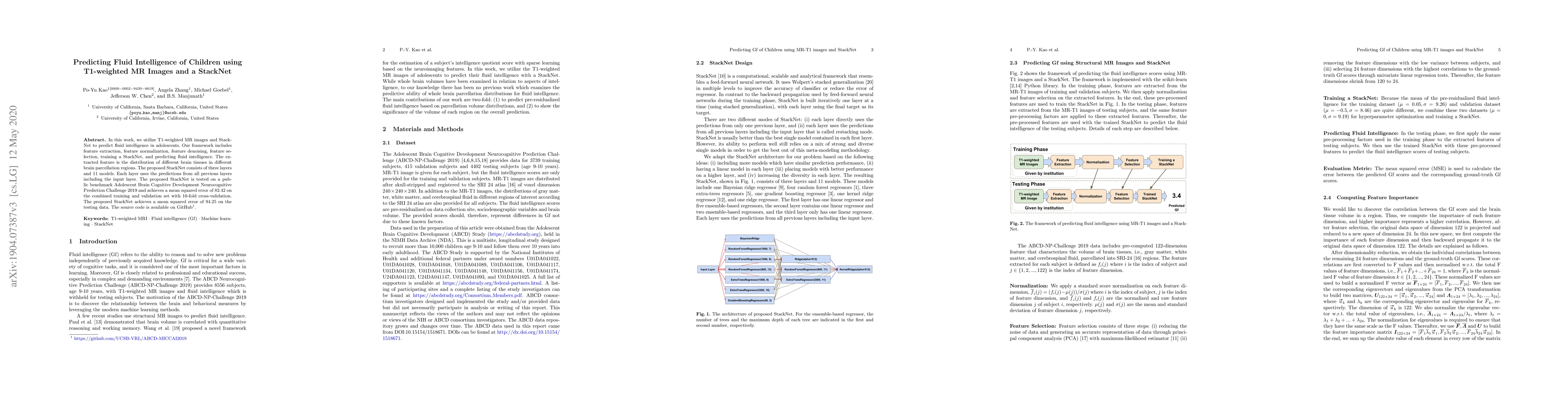 Researchers used T1-weighted MR images to predict fluid intelligence in adolescents, achieving a mean squared error of 82.42 on training data and 94.25 on testing data.
