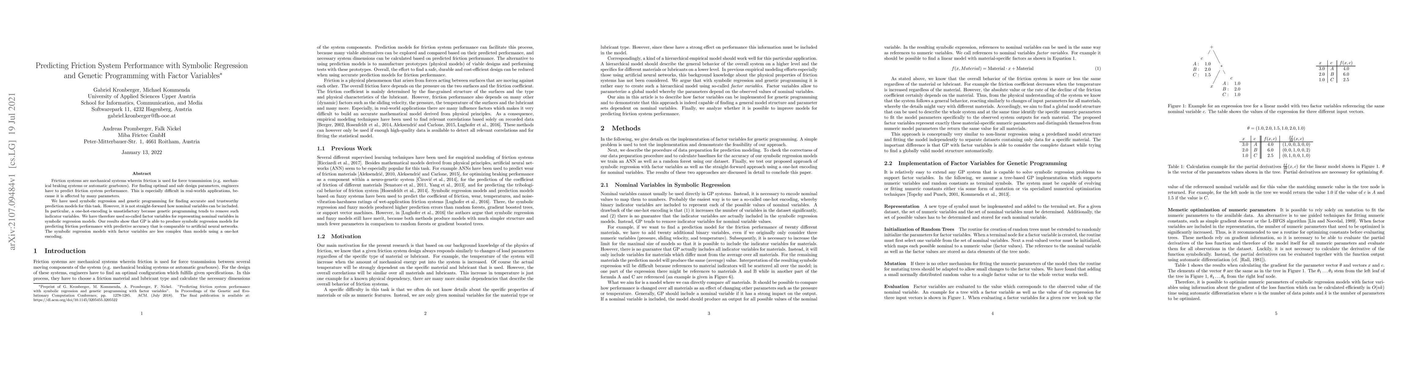 This paper explores the use of symbolic regression and genetic programming to predict friction system performance, addressing the challenge of incorporating nominal variables. Factor variables are introduced to replace one-hot encoding, resulting in more accurate and less complex predictive models compared to traditional methods.