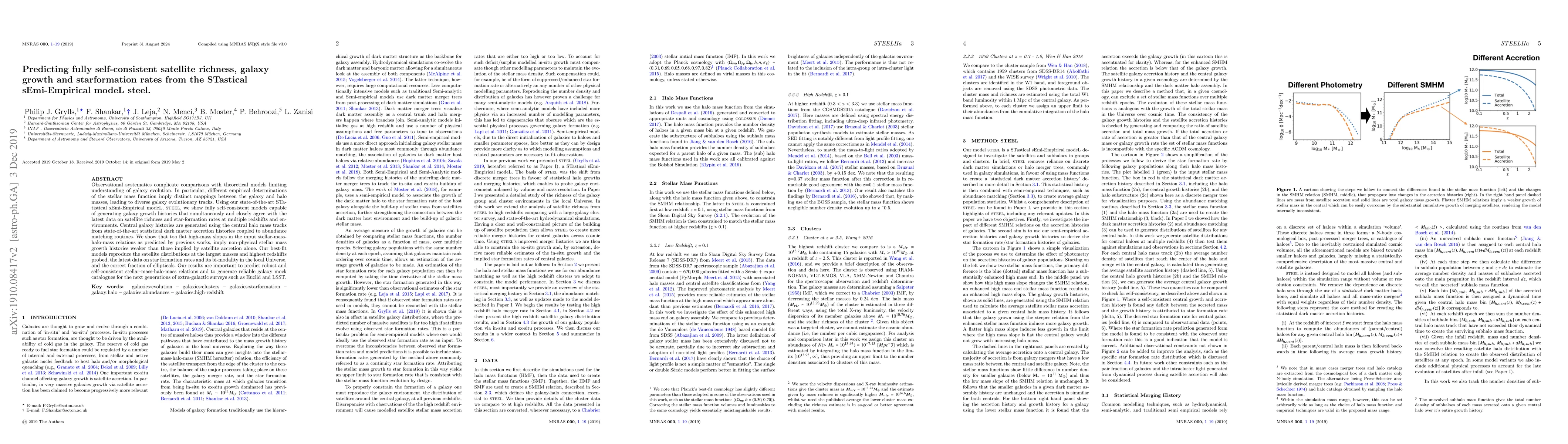 This paper presents the STastical sEmi-Empirical modeL (STEEL) that predicts galaxy growth, satellite richness, and star-formation rates in a self-consistent manner. The model accurately reproduces observational data on satellite distributions and star-formation rates across various redshifts, providing reliable predictions for upcoming extra-galactic surveys.