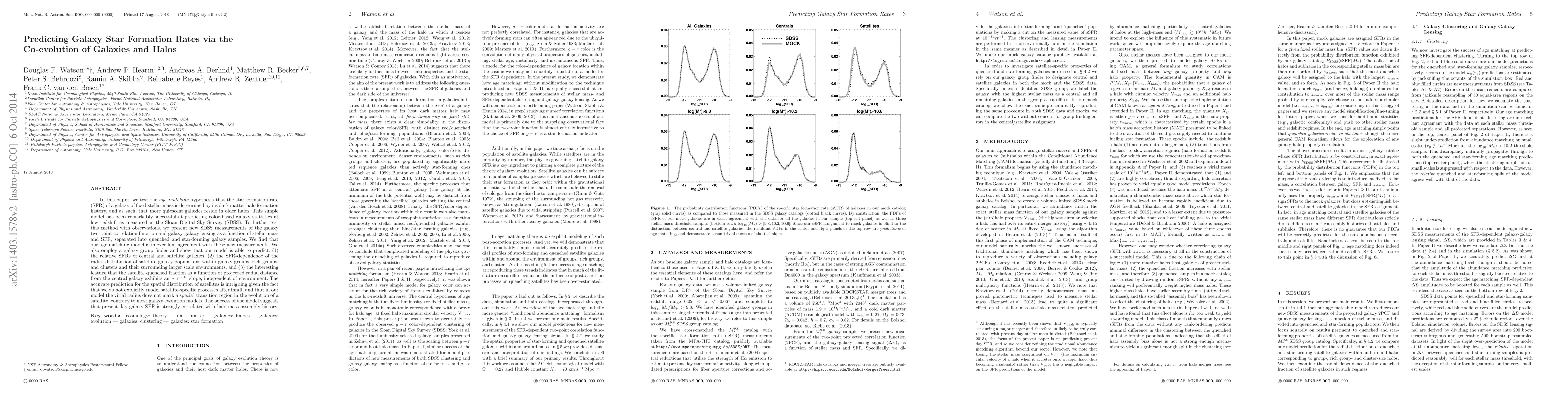 In this paper, we test the age matching hypothesis that the star formation rate (SFR) of a galaxy of fixed stellar mass is determined by its dark matter halo formation history, and as such, that more quiescent galaxies reside in older halos. This simple model has been remarkably successful at predicting color-based galaxy statistics at low redshift as measured in the Sloan Digital Sky Survey (SDSS). To further test this method with observations, we present new SDSS measurements of the galaxy two-point correlation function and galaxy-galaxy lensing as a function of stellar mass and SFR, separated into quenched and star-forming galaxy samples. We find that our age matching model is in excellent agreement with these new measurements. We also employ a galaxy group finder and show that our model is able to predict: (1) the relative SFRs of central and satellite galaxies, (2) the SFR-dependence of the radial distribution of satellite galaxy populations within galaxy groups, rich groups, and clusters and their surrounding larger scale environments, and (3) the interesting feature that the satellite quenched fraction as a function of projected radial distance from the central galaxy exhibits an ~ r^-.15 slope, independent of environment. The accurate prediction for the spatial distribution of satellites is intriguing given the fact that we do not explicitly model satellite-specific processes after infall, and that in our model the virial radius does not mark a special transition region in the evolution of a satellite, contrary to most galaxy evolution models. The success of the model suggests that present-day galaxy SFR is strongly correlated with halo mass assembly history.
