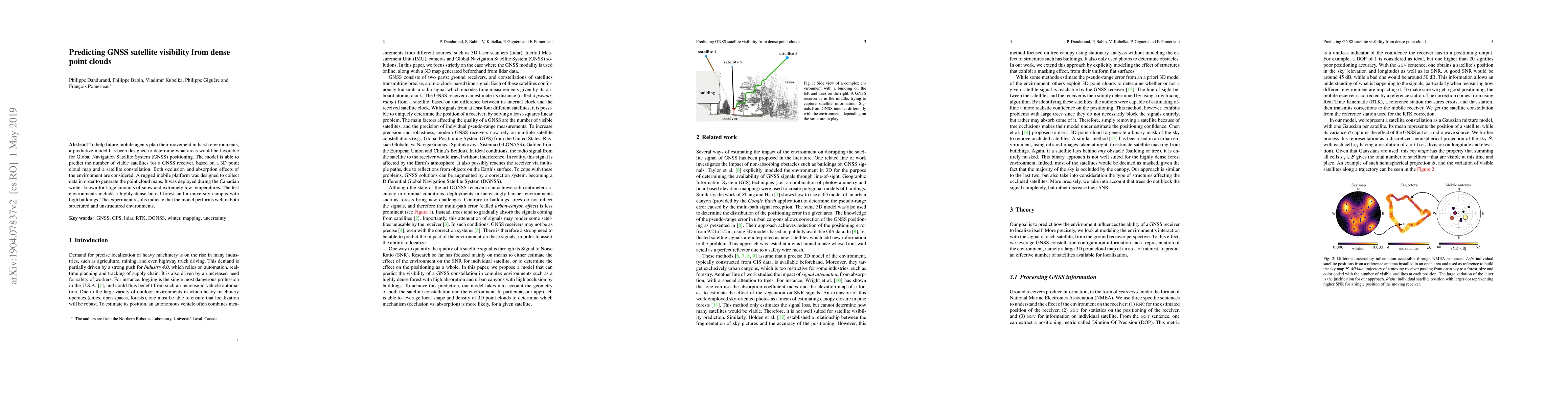 To help future mobile agents plan their movement in harsh environments,a predictive model has been designed to determine what areas would be favorable for Global Navigation Satellite System (GNSS) positioning. The model is able to predict the number of viable satellites for a GNSS receiver, based on a 3D point cloud map and a satellite constellation. Both occlusion and absorption effects of the environment are considered. A rugged mobile platform was designed to collect data in order to generate the point cloud maps. It was deployed during the Canadian winter known for large amounts of snow and extremely low temperatures. The test environments include a highly dense boreal forest and a university campus with high buildings. The experiment results indicate that the model performs well in both structured and unstructured environments
