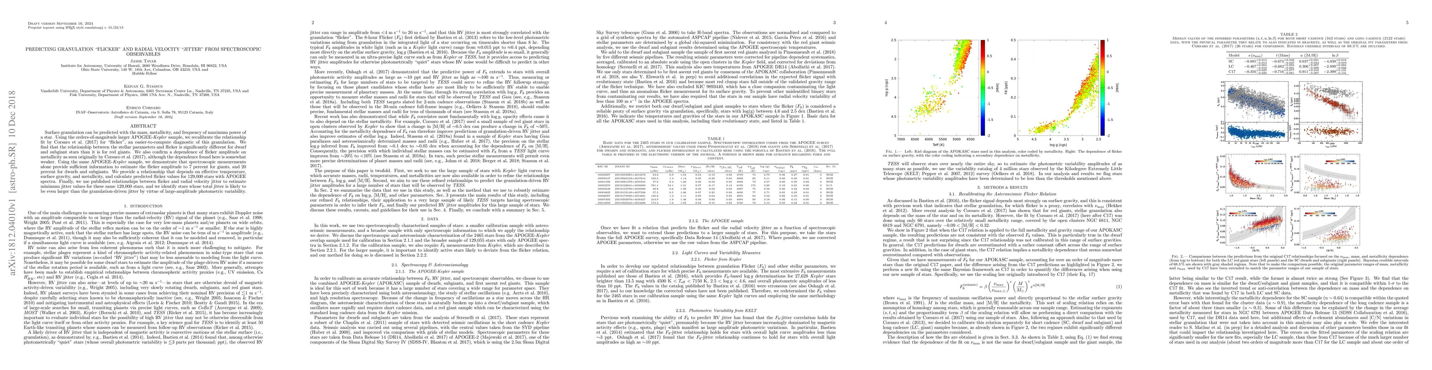 Surface granulation can be predicted with the mass, metallicity, and frequency of maximum power of a star. Using the orders-of-magnitude larger APOGEE-Kepler sample, we recalibrate the relationship fit by Corsaro et al. (2017) for "flicker", an easier-to-compute diagnostic of this granulation. We find that the relationship between the stellar parameters and flicker is significantly different for dwarf and subgiant stars than it is for red giants. We also confirm a dependence of flicker amplitude on metallicity as seen originally by Corsaro et al. (2017), although the dependence found here is somewhat weaker. Using the same APOGEE-Kepler sample, we demonstrate that spectroscopic measurements alone provide sufficient information to estimate the flicker amplitude to 7 percent for giants, and 20 percent for dwarfs and subgiants. We provide a relationship that depends on effective temperature, surface gravity, and metallicity, and calculate predicted flicker values for 129,000 stars with APOGEE spectra. Finally, we use published relationships between flicker and radial velocity jitter to estimate minimum jitter values for these same 129,000 stars, and we identify stars whose total jitter is likely to be even larger than the granulation-driven jitter by virtue of large-amplitude photometric variability.