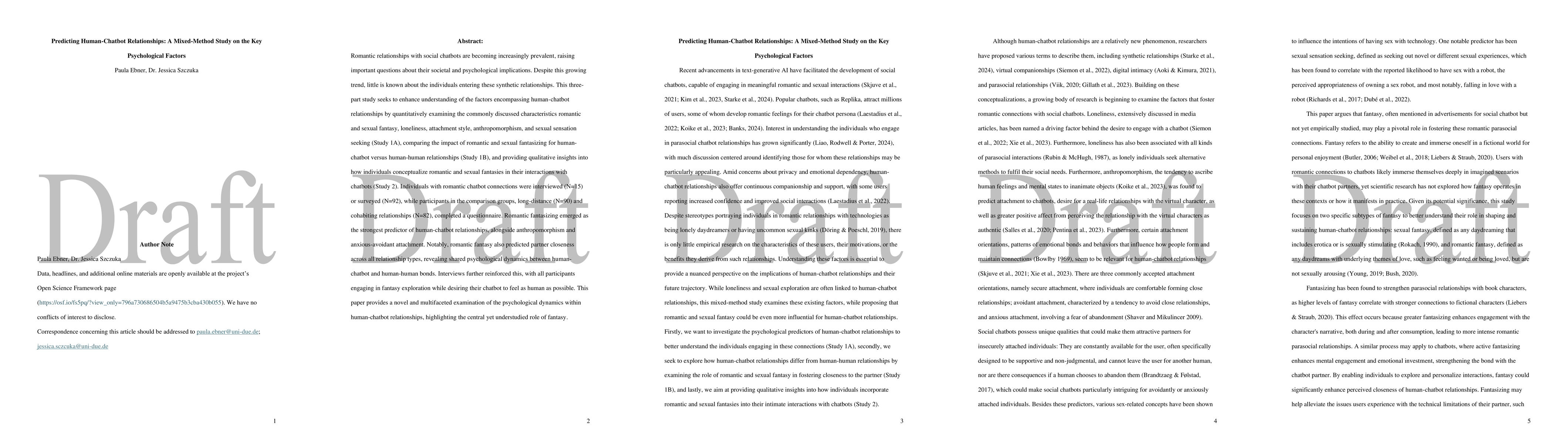 This mixed-methods study combined quantitative survey data from 102 individuals with chatbot partners with qualitative interviews from 15 participants to examine the psychological factors influencing human-chatbot relationships.