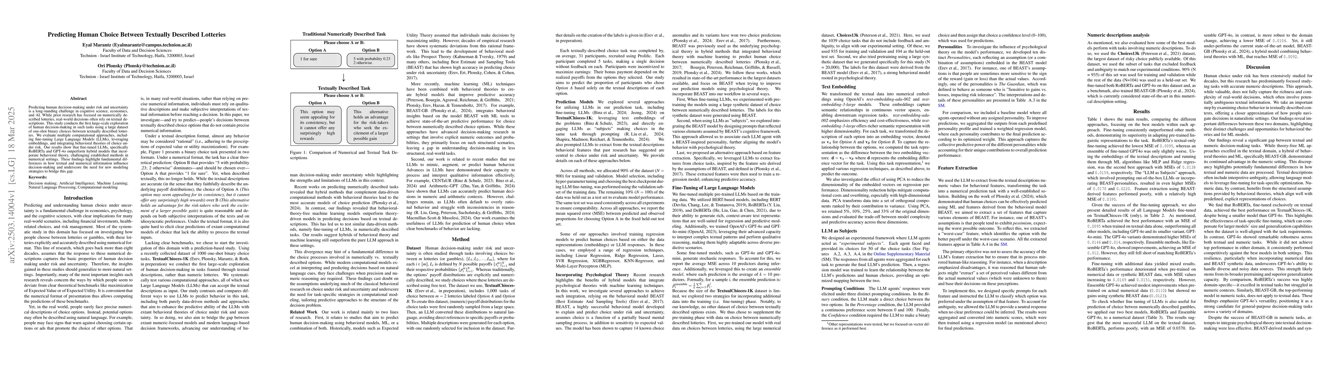 The paper demonstrates the superiority of fine-tuned LLMs over hybrid models for predicting human choices in textually described lotteries.