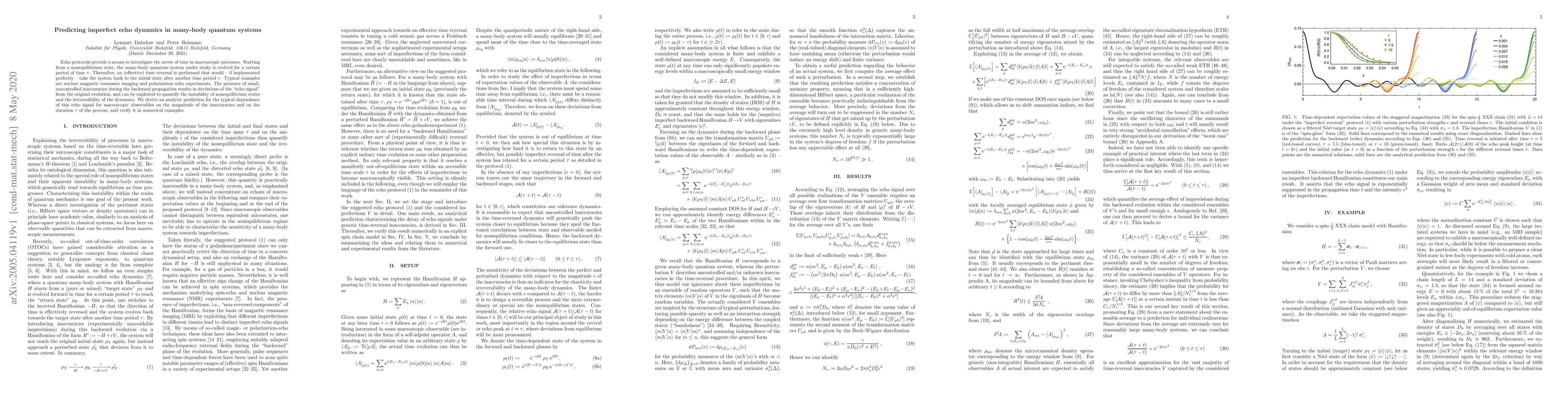 The paper presents a detailed mathematical derivation and analysis of echo dynamics under imperfect time reversal in many-body quantum systems, leading to a predictive formula for echo signals.