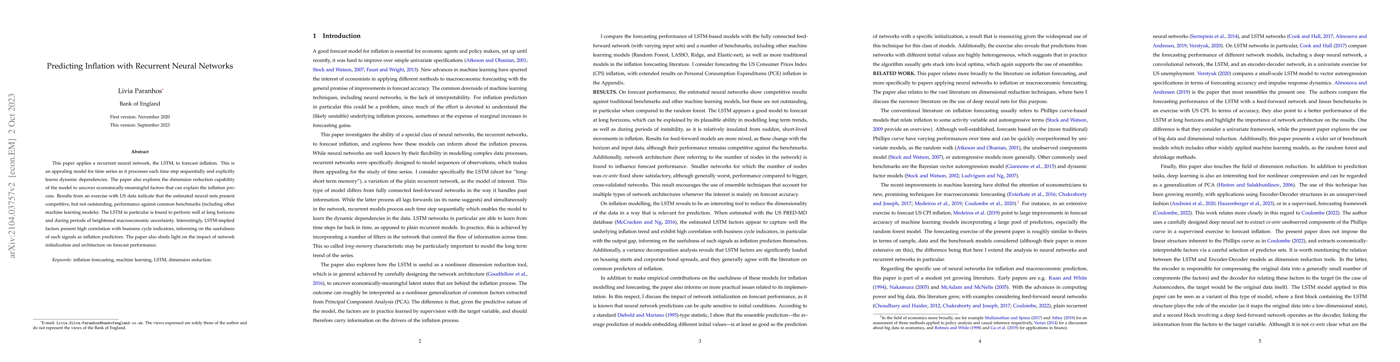 This paper uses LSTM recurrent neural networks to forecast inflation, finding competitive performance against benchmarks, especially during macroeconomic uncertainty. The study also reveals that LSTM-derived factors correlate strongly with business cycle indicators, highlighting their potential as inflation predictors.
