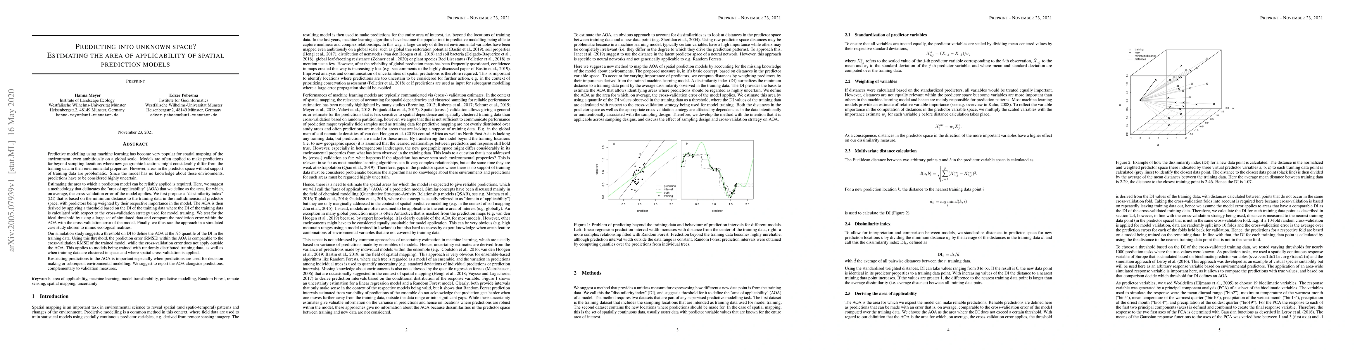 Researchers propose a new method to estimate the 'area of applicability' (AOA) for spatial prediction models, allowing users to determine when predictions are reliable or uncertain. The AOA is defined as the area where model performance is comparable to cross-validation error.