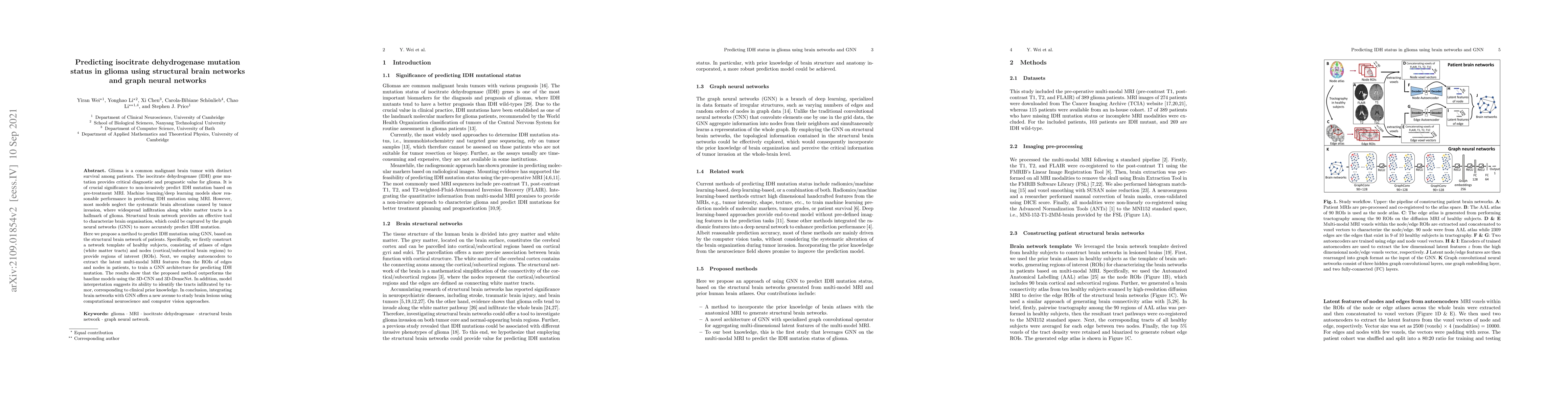 This paper proposes a method to predict isocitrate dehydrogenase (IDH) mutation in glioma using structural brain networks and graph neural networks (GNN). The method constructs a network template from healthy subjects and employs autoencoders to extract features, which are then used to train a GNN model, outperforming traditional CNN models and offering insights into tumor infiltration.