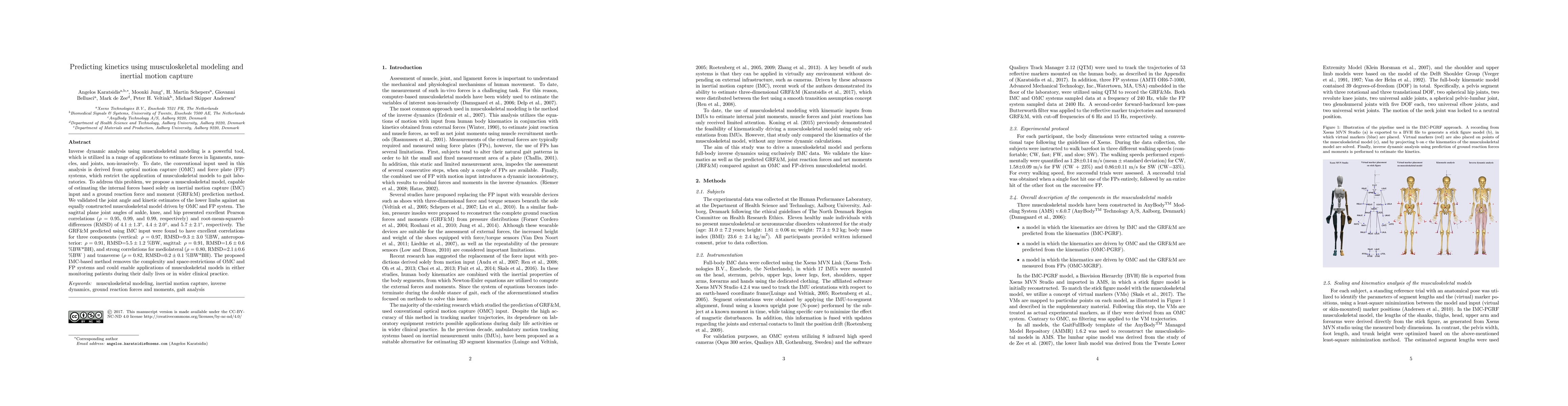 Development of a method for predicting ground reaction forces (GRF&M) and joint reaction forces (JRF&M) using musculoskeletal modeling based solely on IMC data.