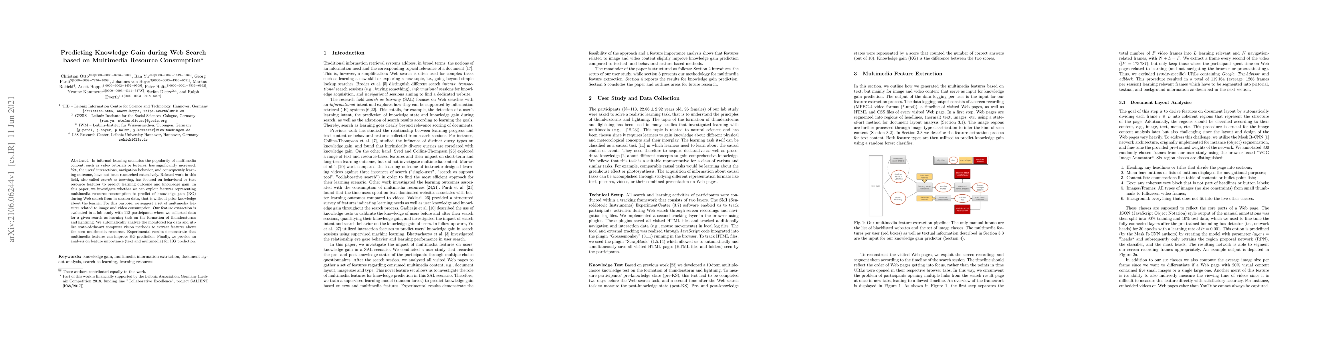 This paper explores predicting knowledge gain during web search based on multimedia resource consumption, proposing a set of multimedia features related to image and video usage. Experimental results from a lab study show that these features can improve the prediction of knowledge gain in informal learning scenarios, outperforming traditional text-based methods.