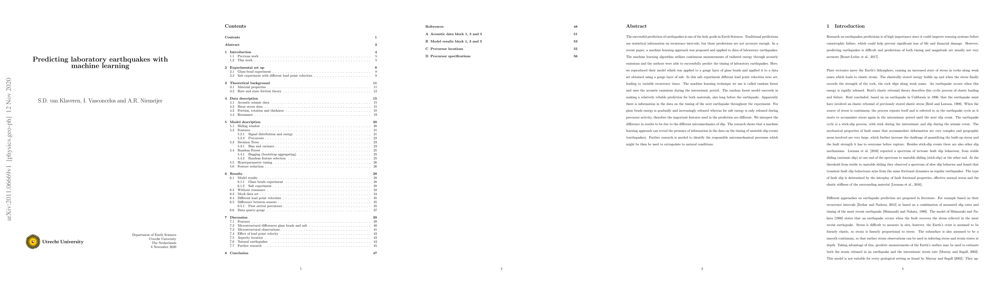 A machine learning approach using acoustic emissions data successfully predicts laboratory earthquakes, revealing information on timing of unstable slip events.