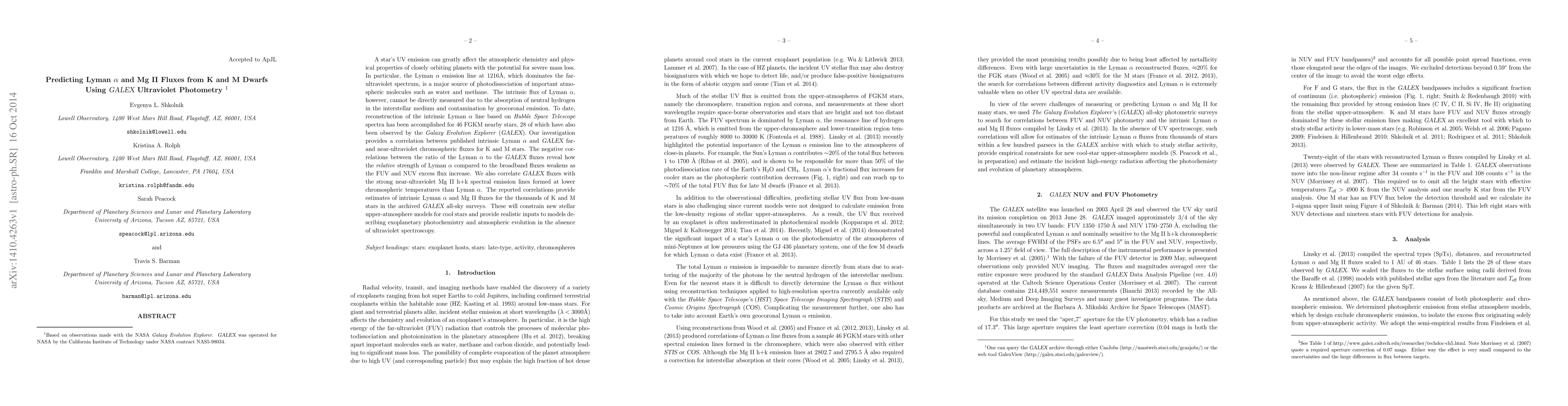 This paper investigates correlations between Lyman-alpha and Mg II fluxes in K and M dwarfs using GALEX ultraviolet photometry, revealing how Lyman-alpha flux diminishes relative to broadband UV as FUV and NUV flux increases. The findings provide estimates for intrinsic Lyman-alpha and Mg II fluxes, aiding in stellar upper-atmosphere models and exoplanetary photochemistry studies.