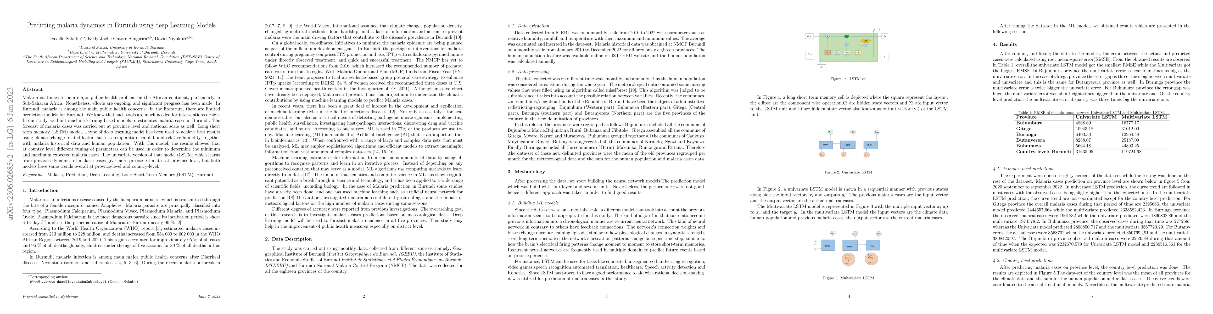 This study develops machine-learning models, specifically LSTM deep learning, to predict malaria cases in Burundi using climate and historical data. The LSTM model provides accurate forecasts at both provincial and national levels, highlighting the potential for tailored interventions.