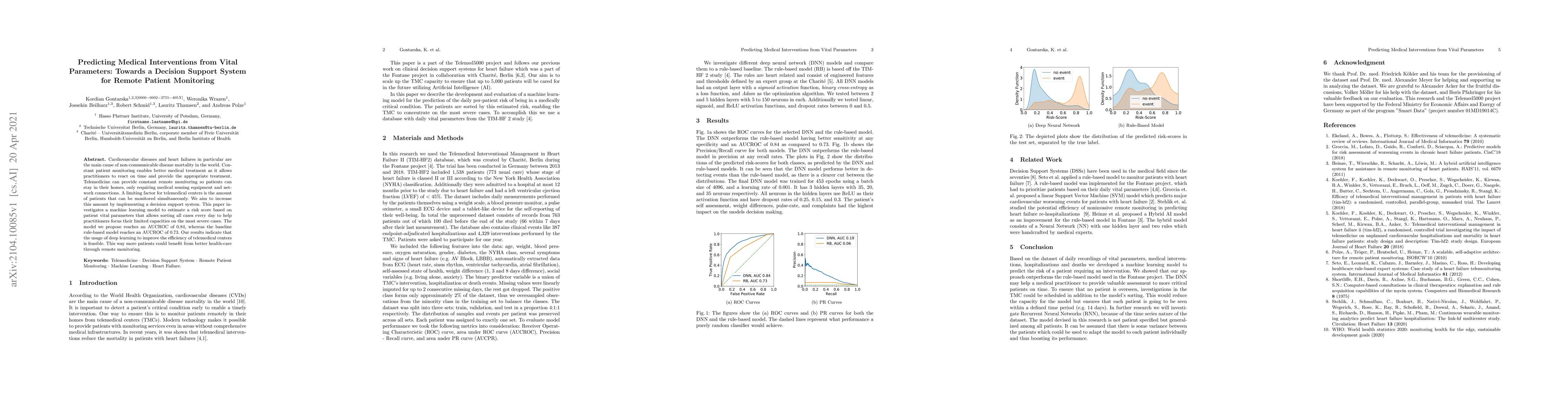 This paper proposes a machine learning model to predict medical interventions based on vital parameters, aiming to enhance remote patient monitoring for cardiovascular diseases. The model achieves an AUCROC of 0.84, outperforming the baseline rule-based model by 0.11, indicating the feasibility of deep learning to improve telemedical center efficiency.