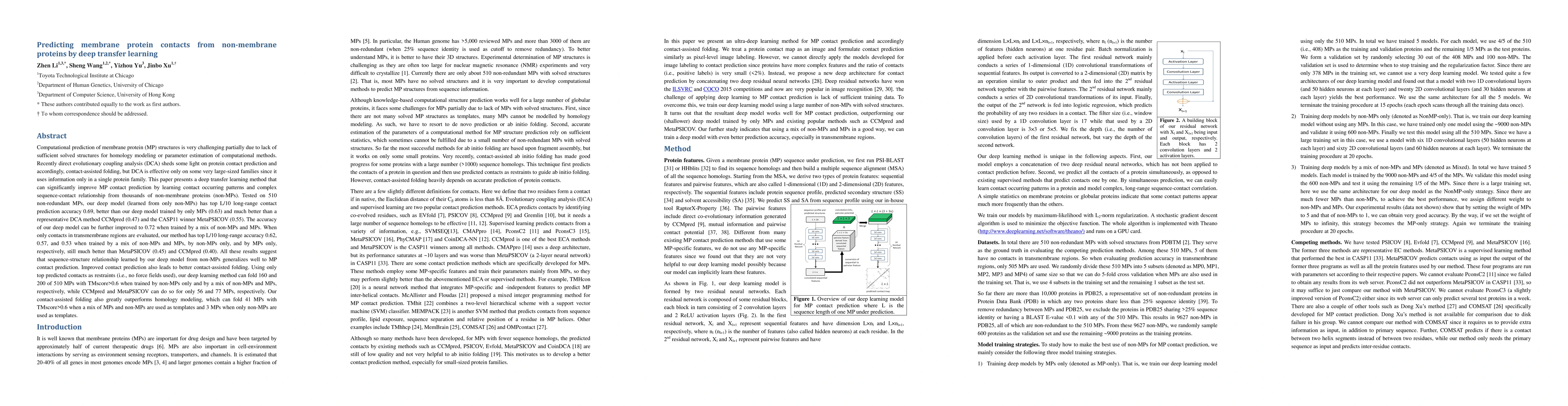 A deep transfer learning method improves membrane protein contact prediction by learning from non-membrane proteins, outperforming traditional methods and achieving higher accuracy than existing approaches.