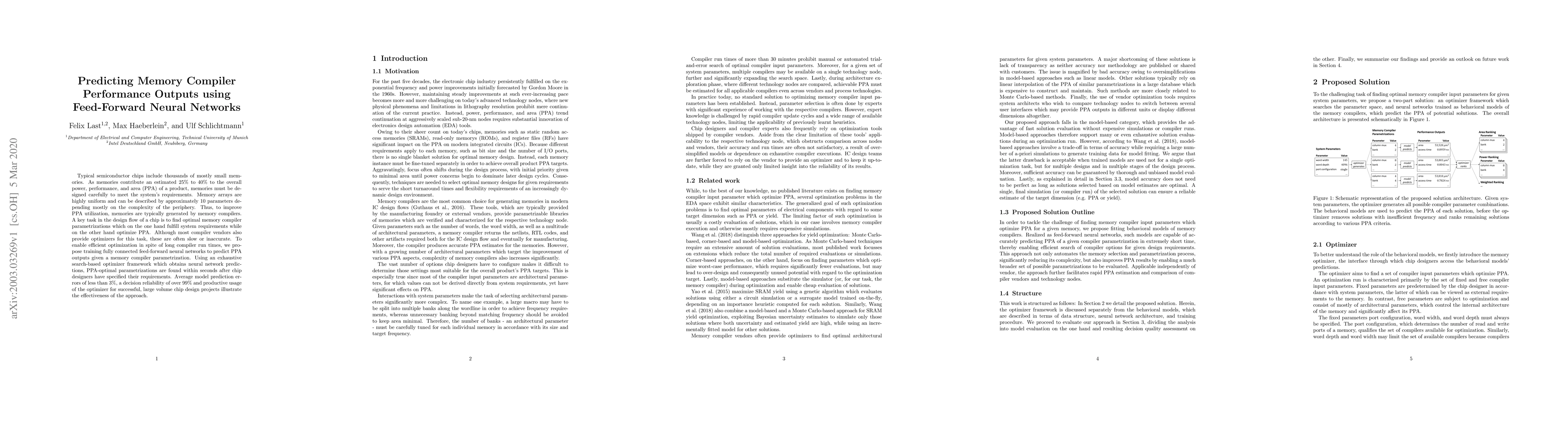 Researchers propose using neural networks to predict memory compiler performance outputs, achieving average prediction errors of less than 3% and decision reliability over 99%. This approach enables efficient optimization within seconds after chip designers specify their requirements.