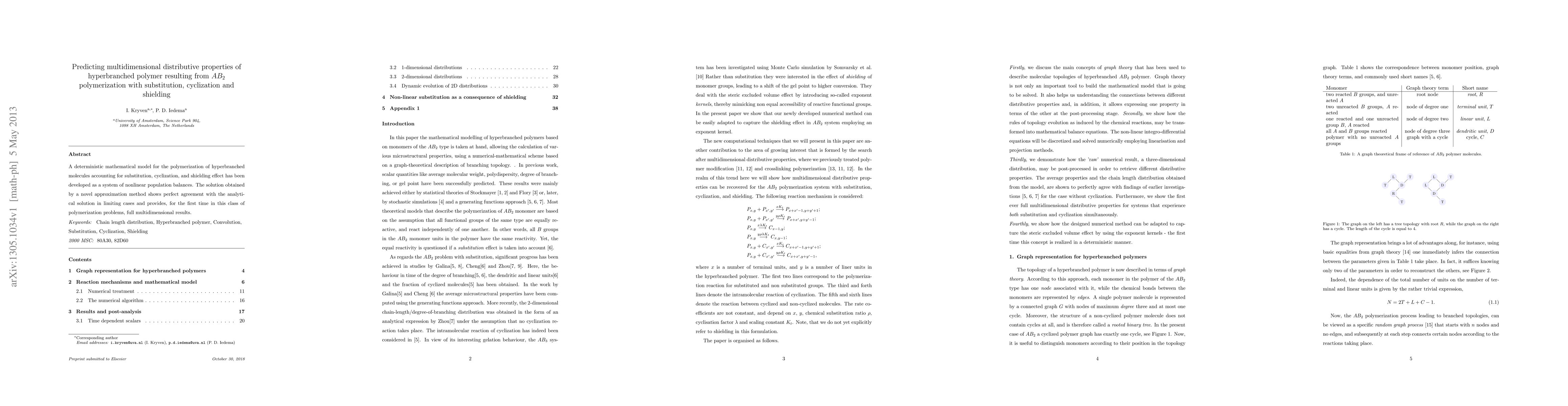 This paper develops a deterministic mathematical model for hyperbranched polymer formation via AB2 polymerization, incorporating substitution, cyclization, and shielding effects. The novel approximation method yields full multidimensional results, matching analytical solutions in limiting cases.
