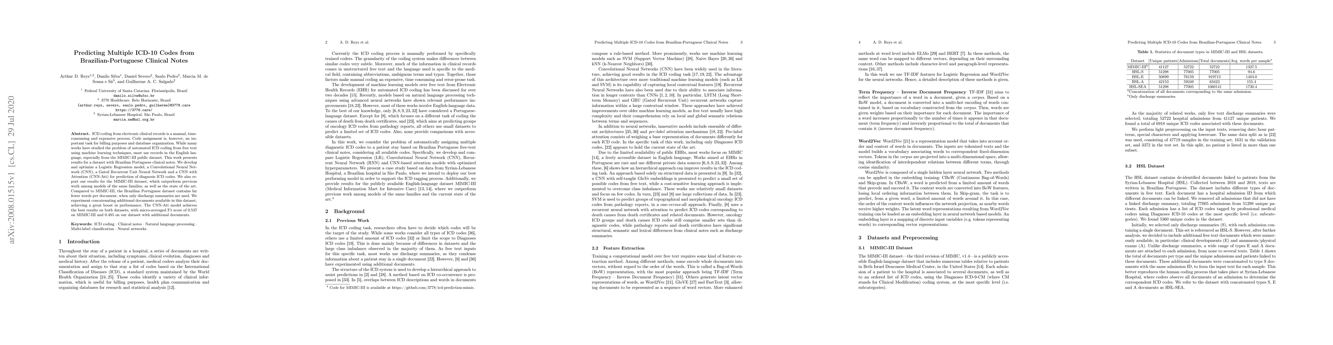 This research explores the automated coding of Brazilian Portuguese clinical notes using machine learning techniques, focusing on predicting multiple ICD-10 codes. The study compares various models, including Logistic Regression, CNN, GRU, and CNN with Attention, achieving superior results on both the MIMIC-III English dataset and a newly compiled Brazilian Portuguese dataset. The CNN-Att model demonstrates the best performance, highlighting the potential of attention mechanisms in improving coding accuracy.