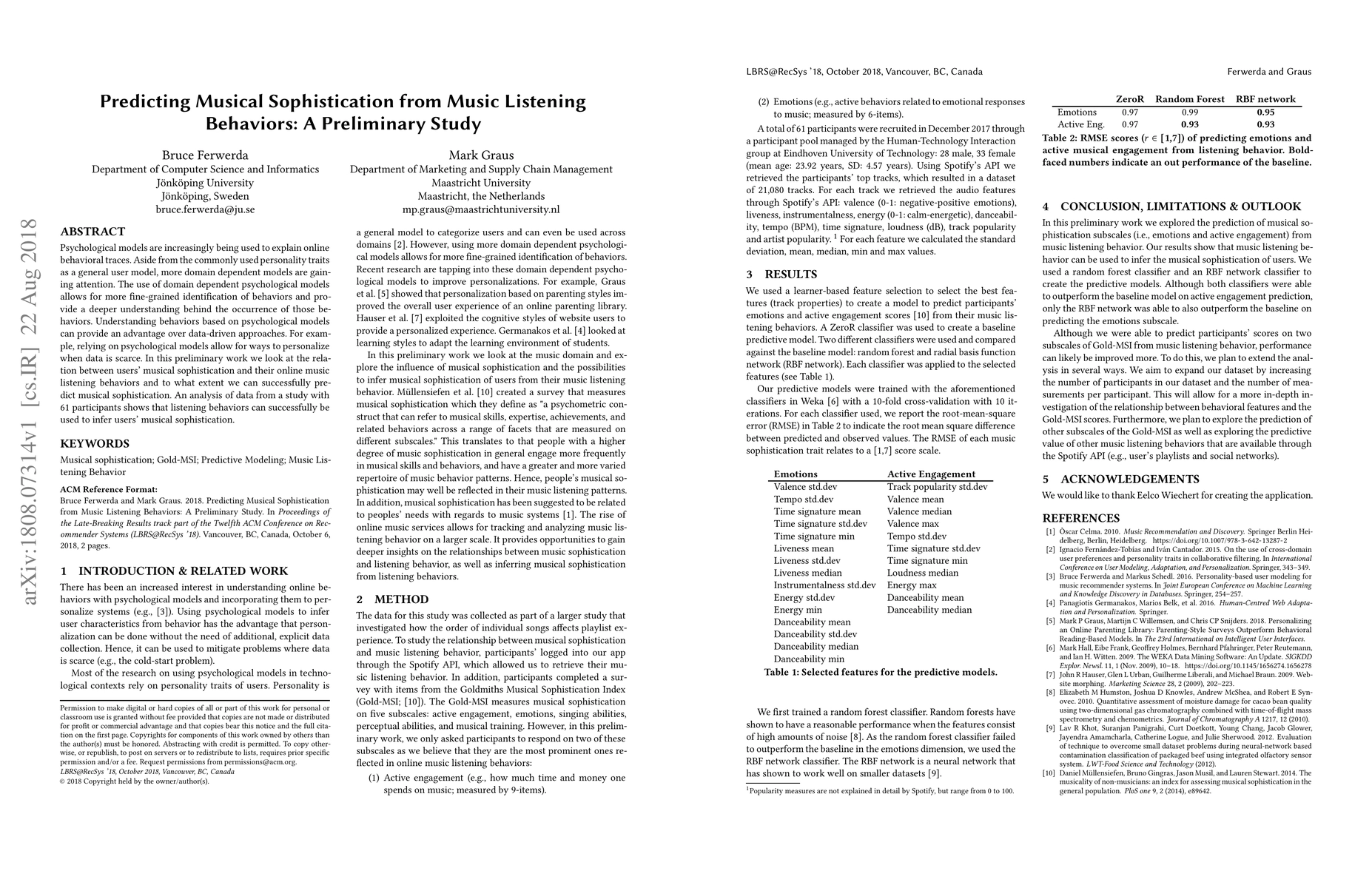 Psychological models are increasingly being used to explain online behavioral traces. Aside from the commonly used personality traits as a general user model, more domain dependent models are gaining attention. The use of domain dependent psychological models allows for more fine-grained identification of behaviors and provide a deeper understanding behind the occurrence of those behaviors. Understanding behaviors based on psychological models can provide an advantage over data-driven approaches. For example, relying on psychological models allow for ways to personalize when data is scarce. In this preliminary work we look at the relation between users' musical sophistication and their online music listening behaviors and to what extent we can successfully predict musical sophistication. An analysis of data from a study with 61 participants shows that listening behaviors can successfully be used to infer users' musical sophistication.