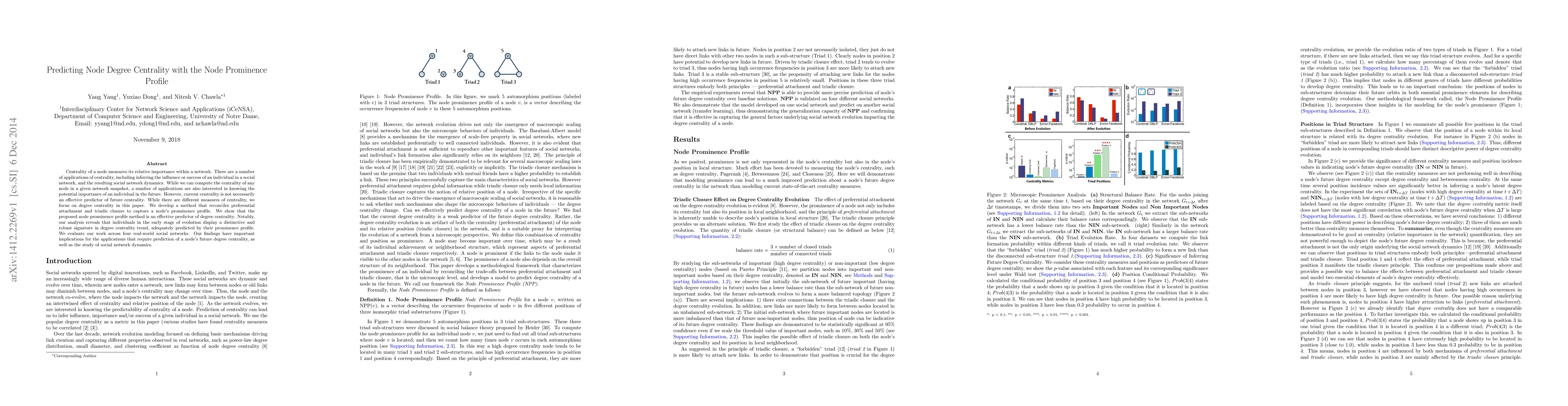 Centrality of a node measures its relative importance within a network. There are a number of applications of centrality, including inferring the influence or success of an individual in a social network, and the resulting social network dynamics. While we can compute the centrality of any node in a given network snapshot, a number of applications are also interested in knowing the potential importance of an individual in the future. However, current centrality is not necessarily an effective predictor of future centrality. While there are different measures of centrality, we focus on degree centrality in this paper. We develop a method that reconciles preferential attachment and triadic closure to capture a node's prominence profile. We show that the proposed node prominence profile method is an effective predictor of degree centrality. Notably, our analysis reveals that individuals in the early stage of evolution display a distinctive and robust signature in degree centrality trend, adequately predicted by their prominence profile. We evaluate our work across four real-world social networks. Our findings have important implications for the applications that require prediction of a node's future degree centrality, as well as the study of social network dynamics.