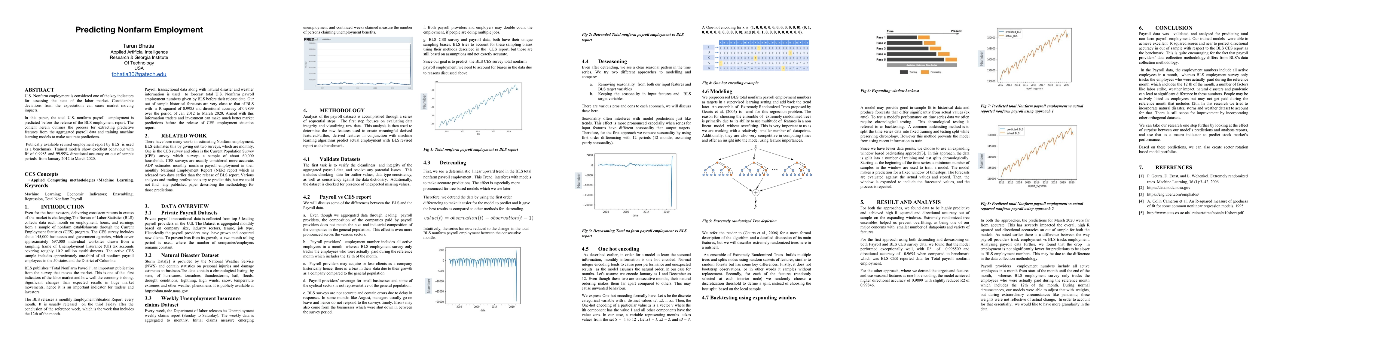 U.S. Nonfarm employment is considered one of the key indicators for assessing the state of the labor market. Considerable deviations from the expectations can cause market moving impacts. In this paper, the total U.S. nonfarm payroll employment is predicted before the release of the BLS employment report. The content herein outlines the process for extracting predictive features from the aggregated payroll data and training machine learning models to make accurate predictions. Publically available revised employment report by BLS is used as a benchmark. Trained models show excellent behaviour with R2 of 0.9985 and 99.99% directional accuracy on out of sample periods from January 2012 to March 2020. Keywords Machine Learning; Economic Indicators; Ensembling; Regression, Total Nonfarm Payroll