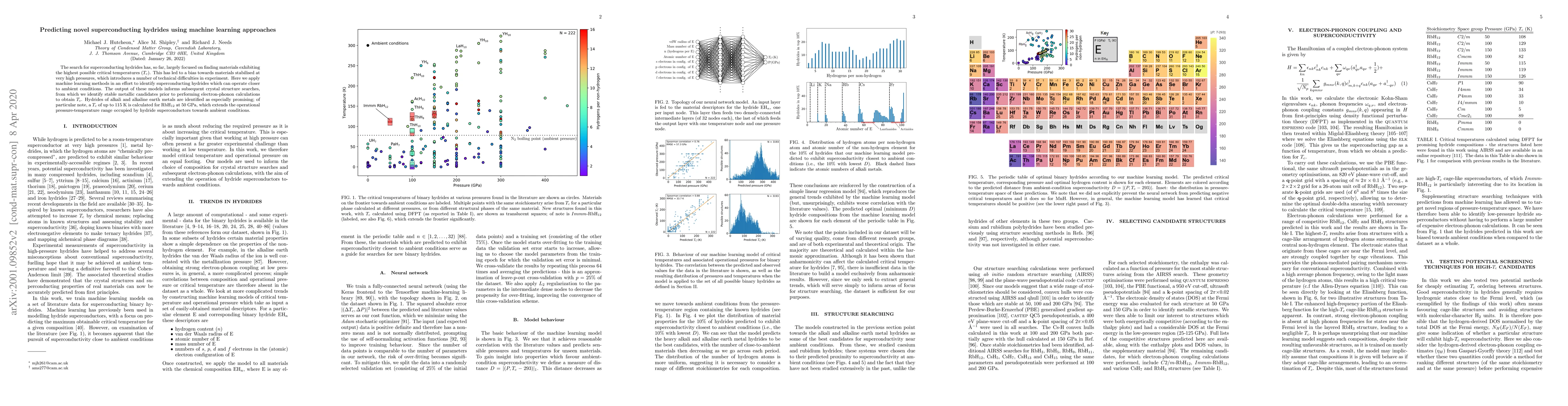 This paper employs machine learning to predict novel superconducting hydrides that operate at near-ambient conditions, identifying alkali and alkaline earth metal hydrides as promising candidates. RbH$_{12}$ and CsH$_7$ are highlighted with calculated critical temperatures of up to 115 K and 90 K, respectively, under high pressure.