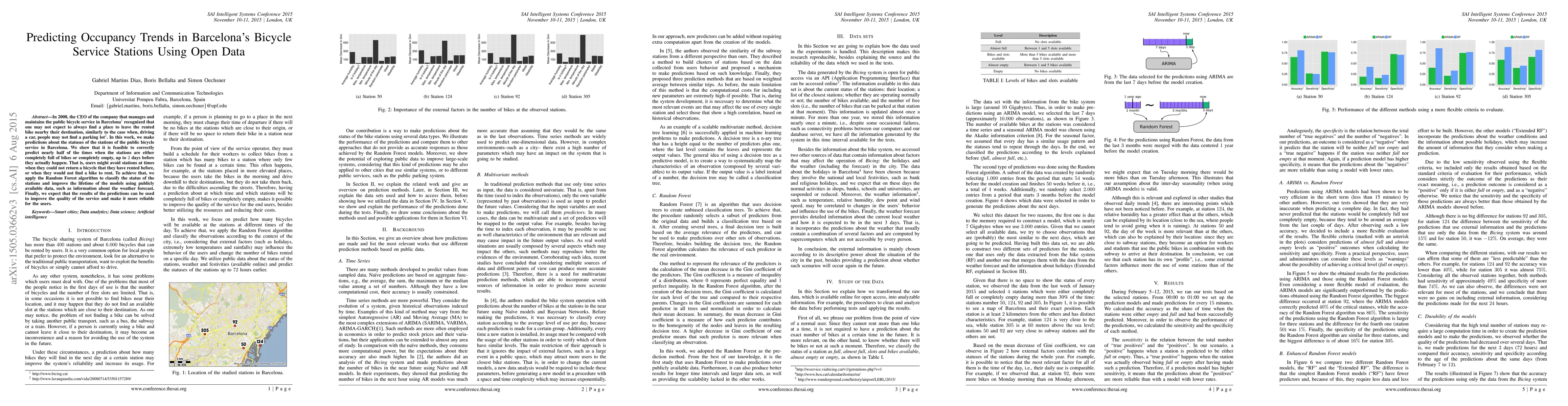 This study predicts occupancy trends for Barcelona's bicycle service stations using open data and the Random Forest algorithm, achieving nearly half accuracy in forecasting full or empty stations up to two days in advance. The aim is to improve service reliability and user experience.