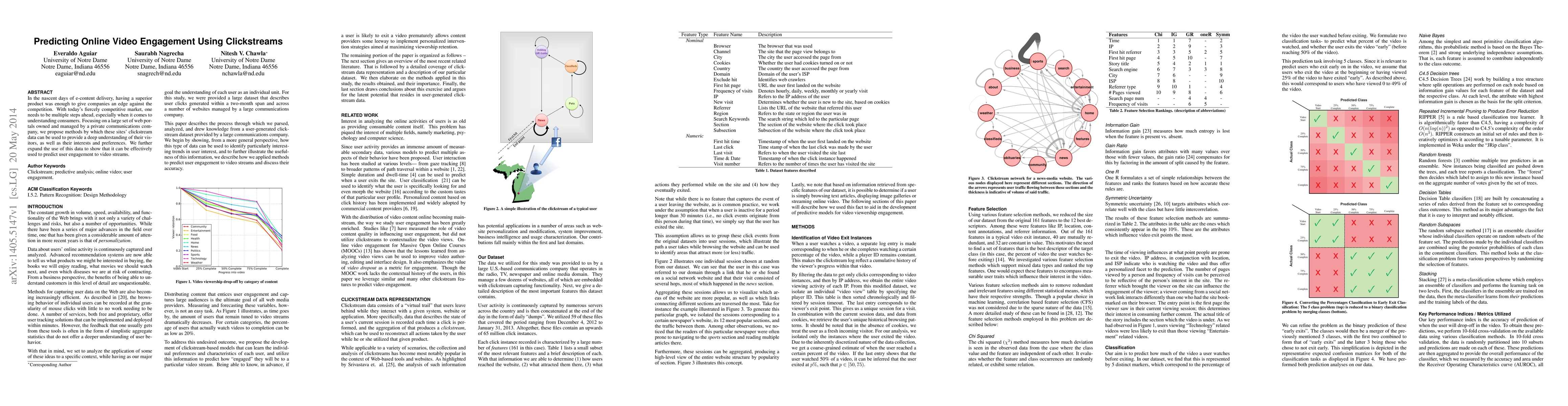 In the nascent days of e-content delivery, having a superior product was enough to give companies an edge against the competition. With today's fiercely competitive market, one needs to be multiple steps ahead, especially when it comes to understanding consumers. Focusing on a large set of web portals owned and managed by a private communications company, we propose methods by which these sites' clickstream data can be used to provide a deep understanding of their visitors, as well as their interests and preferences. We further expand the use of this data to show that it can be effectively used to predict user engagement to video streams.