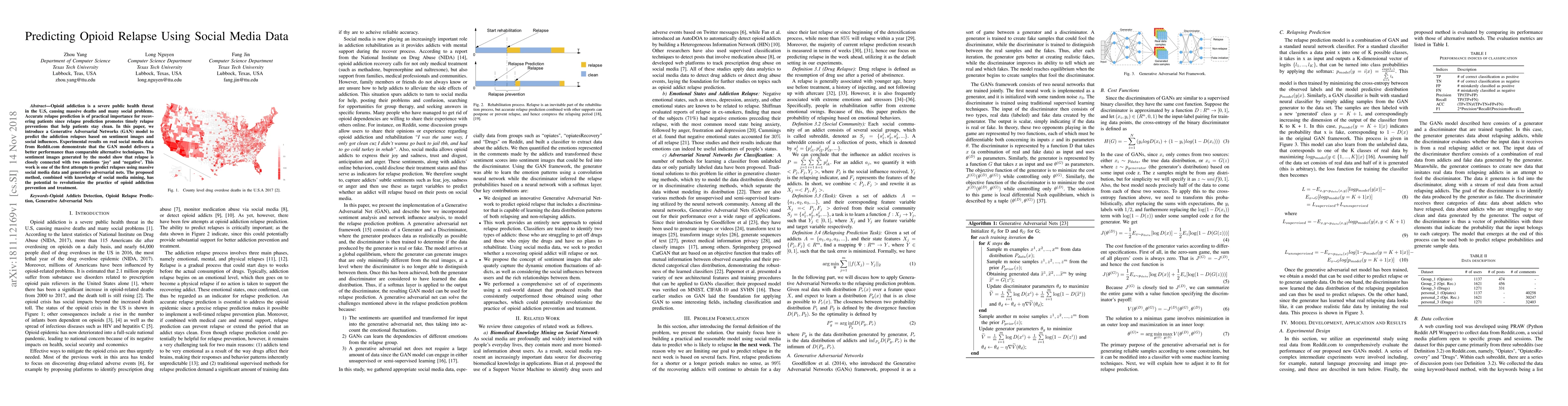 This paper proposes a Generative Adversarial Networks (GAN) model to predict opioid relapse using sentiment images and social influences from Reddit.com, demonstrating superior performance over alternative methods and highlighting the connection between relapse and emotions like joy and negativity.