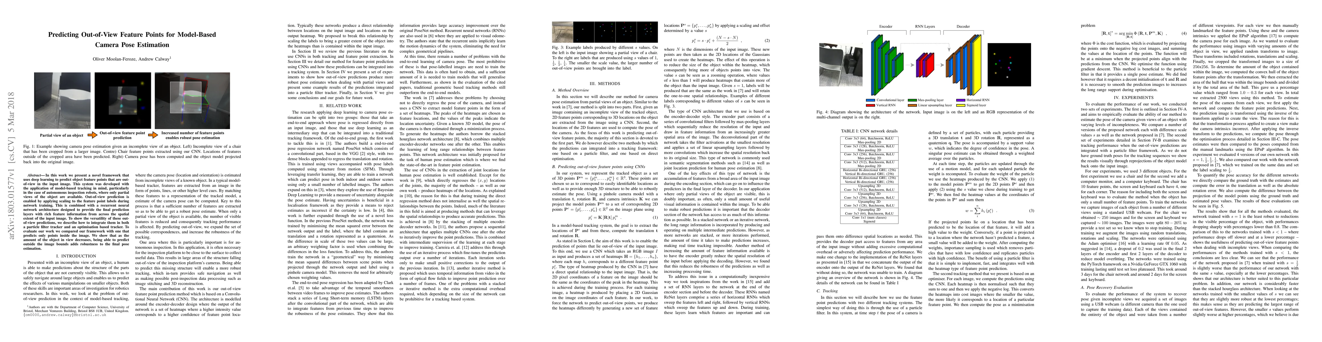 In this work we present a novel framework that uses deep learning to predict object feature points that are out-of-view in the input image. This system was developed with the application of model-based tracking in mind, particularly in the case of autonomous inspection robots, where only partial views of the object are available. Out-of-view prediction is enabled by applying scaling to the feature point labels during network training. This is combined with a recurrent neural network architecture designed to provide the final prediction layers with rich feature information from across the spatial extent of the input image. To show the versatility of these out-of-view predictions, we describe how to integrate them in both a particle filter tracker and an optimisation based tracker. To evaluate our work we compared our framework with one that predicts only points inside the image. We show that as the amount of the object in view decreases, being able to predict outside the image bounds adds robustness to the final pose estimation.