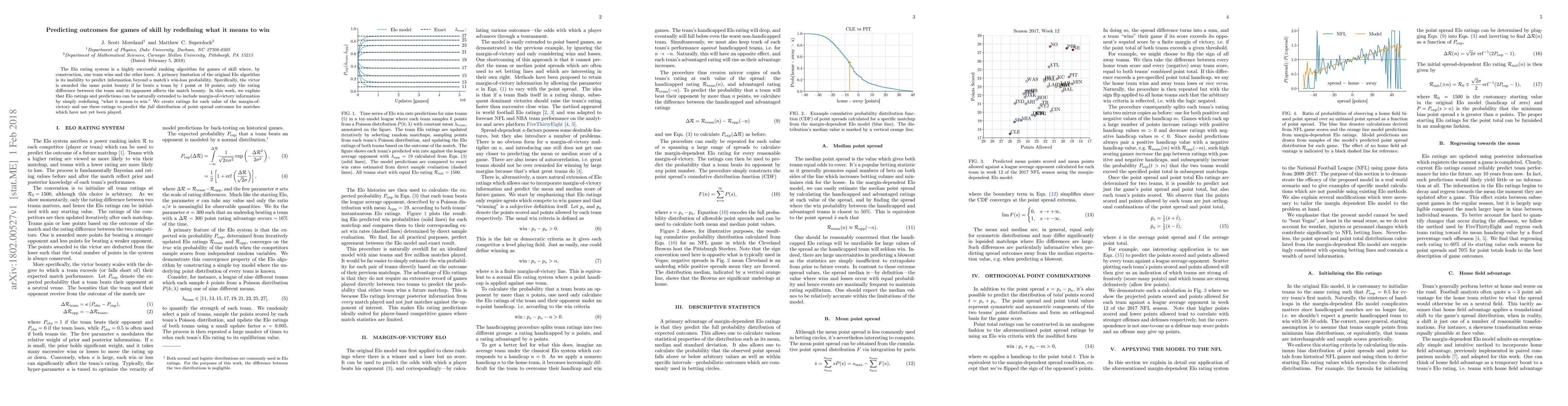 The Elo rating system is a highly successful ranking algorithm for games of skill where, by construction, one team wins and the other loses. A primary limitation of the original Elo algorithm is its inability to predict information beyond a match's win-loss probability. Specifically, the victor is awarded the same point bounty if he beats a team by 1 point or 10 points; only the rating difference between the team and its opponent affects the match bounty. In this work, we explain that Elo ratings and predictions can be naturally extended to include margin-of-victory information by simply redefining "what it means to win." We create ratings for each value of the margin-of-victory and use these ratings to predict the full distribution of point spread outcomes for matches which have not yet been played.