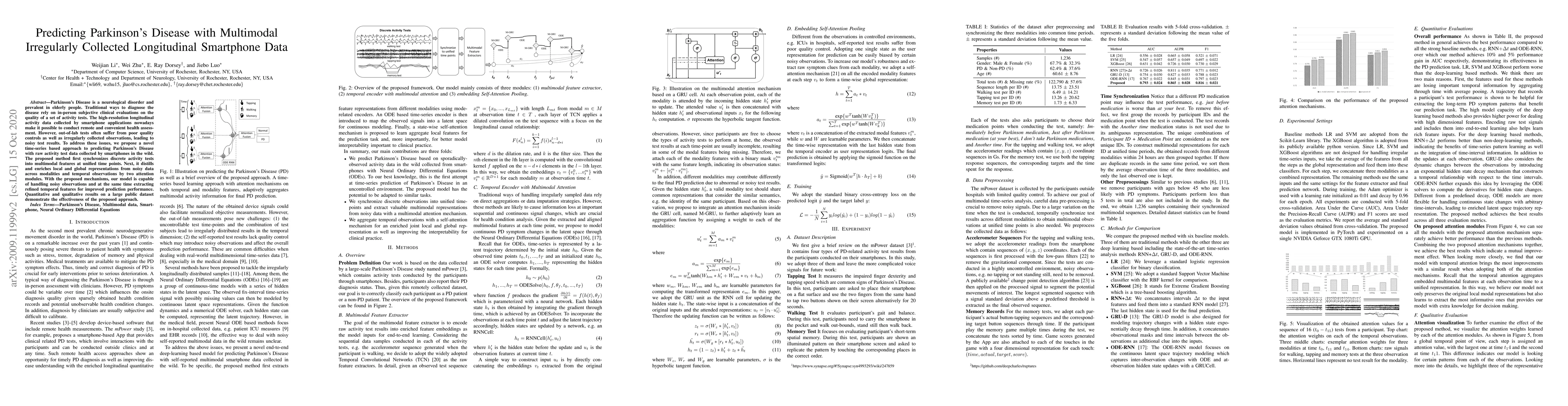 This paper proposes a novel time-series approach to predict Parkinson's Disease using multimodal longitudinal data from irregularly collected smartphone activity tests. The method synchronizes and enriches features from noisy data, employing attention modules to extract refined temporal features for improved prediction accuracy.