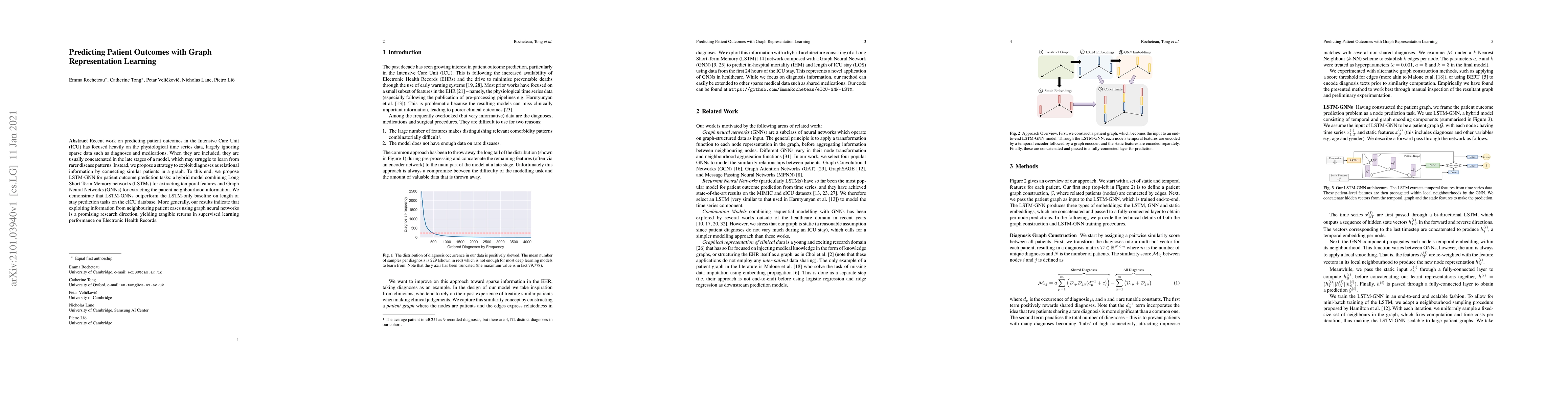 Recent work on predicting patient outcomes in the Intensive Care Unit (ICU) has focused heavily on the physiological time series data, largely ignoring sparse data such as diagnoses and medications. When they are included, they are usually concatenated in the late stages of a model, which may struggle to learn from rarer disease patterns. Instead, we propose a strategy to exploit diagnoses as relational information by connecting similar patients in a graph. To this end, we propose LSTM-GNN for patient outcome prediction tasks: a hybrid model combining Long Short-Term Memory networks (LSTMs) for extracting temporal features and Graph Neural Networks (GNNs) for extracting the patient neighbourhood information. We demonstrate that LSTM-GNNs outperform the LSTM-only baseline on length of stay prediction tasks on the eICU database. More generally, our results indicate that exploiting information from neighbouring patient cases using graph neural networks is a promising research direction, yielding tangible returns in supervised learning performance on Electronic Health Records.