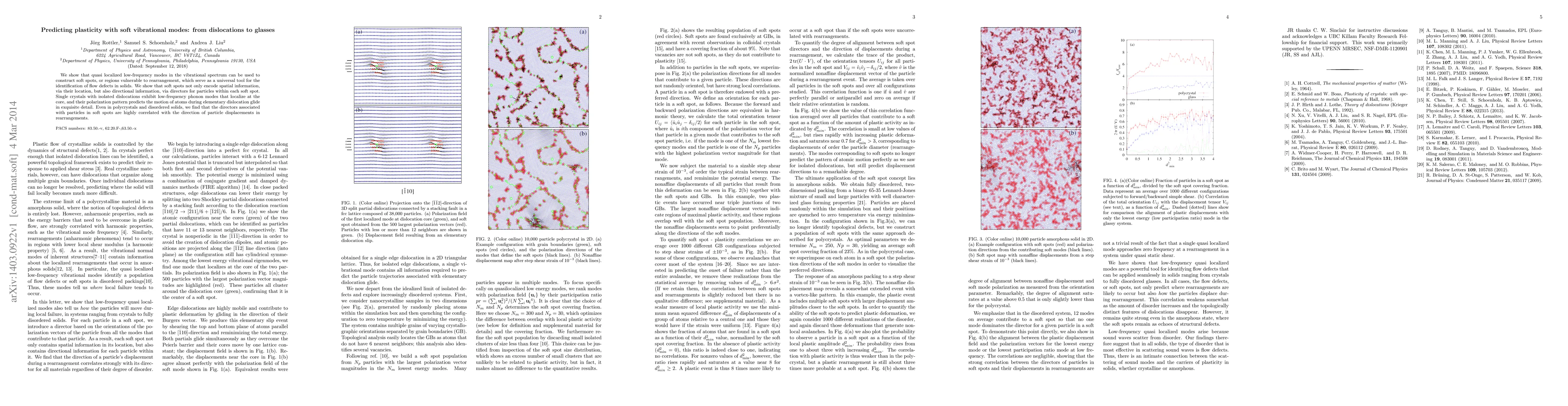 This paper demonstrates that low-frequency vibrational modes can identify "soft spots" in solids, revealing regions prone to rearrangement and flow defects. These soft spots encode both spatial and directional information, accurately predicting dislocation motion in crystals and particle displacements in disordered materials.